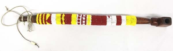 Native American Plains Indian Beaded Pipestone Pipe, 16'' x 1''