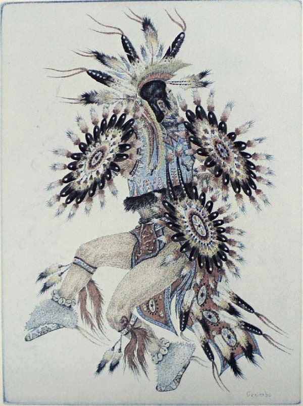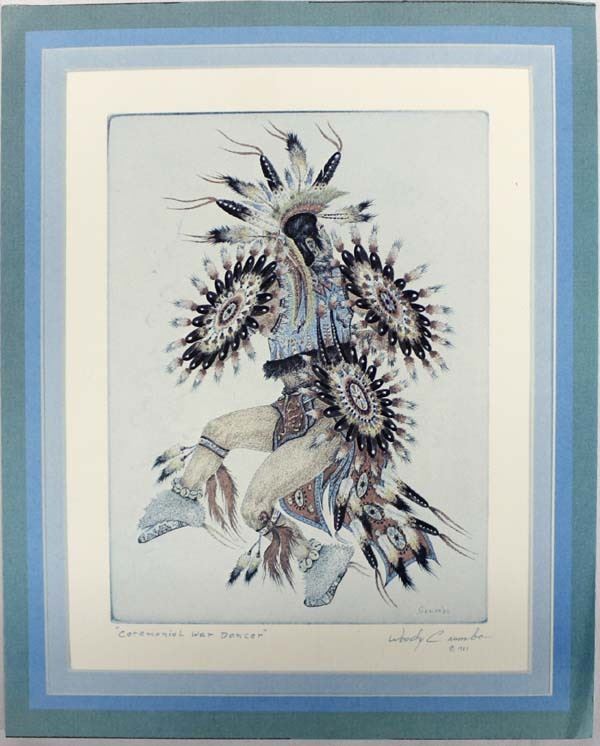 Native American Potawatomi Woodrow Wilson ''Woody'' Crumbo Print (1912-1989) ''Ceromonial War Dancer'', visual measures 7'' x 9.25''