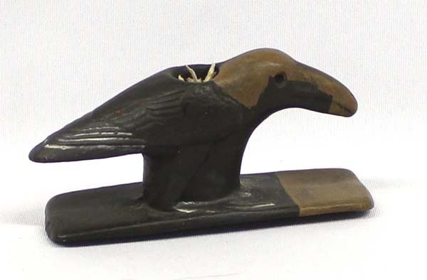 Native American Pottery Crow Pipe, measures 2'' x 4'' x 1.25''