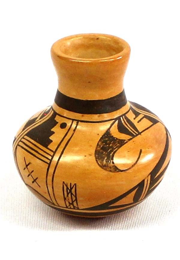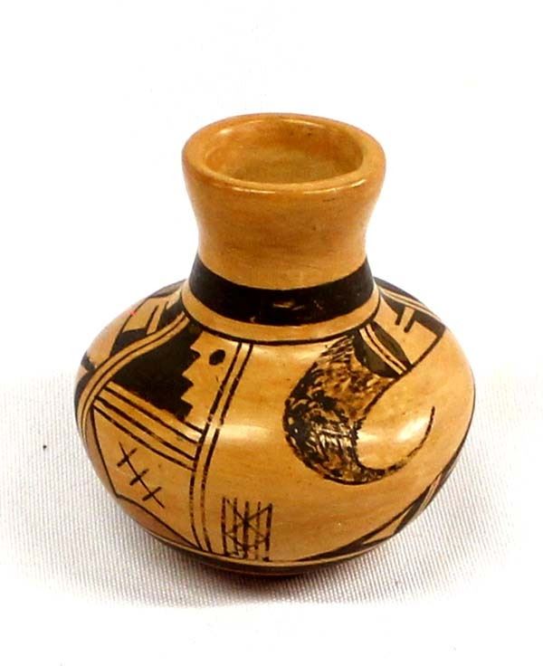 Native American Hopi Miniature Pottery Vase by Bonnie Nampeyo (b. 1958), measures 2'' x 2.5'' and is signed on the bottom, FYI: ''Bonnie Sahmie Chapella Nampeyo, Hopi/Tewa, Snow Clan, Shungopavy/Polacca, active 1975-present''