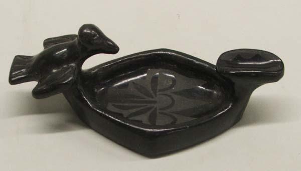 San Ildefonso Etched Black Pottery. Measures approx. 2 5/8''H x 7''L x 3 1/2''W. Buyers Pay Actual Shipping and Handling Charges(see terms and conditions for more information).