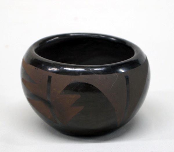 Native American Santa Clara Pot by Olaria Sisneros, signed, measures 3.5''dia. x 2.25''H. Buyers Pay Actual Shipping and Handling Charges(see terms and conditions for more information).