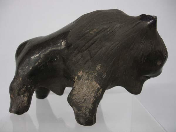 Native American Santa Clara Pottery Buffalo, Horn Damaged and Leg has been glued, measures 3''H x 5''L x 2.25''W. Buyers Pay Actual Shipping and Handling Charges(see terms and conditions for more information).