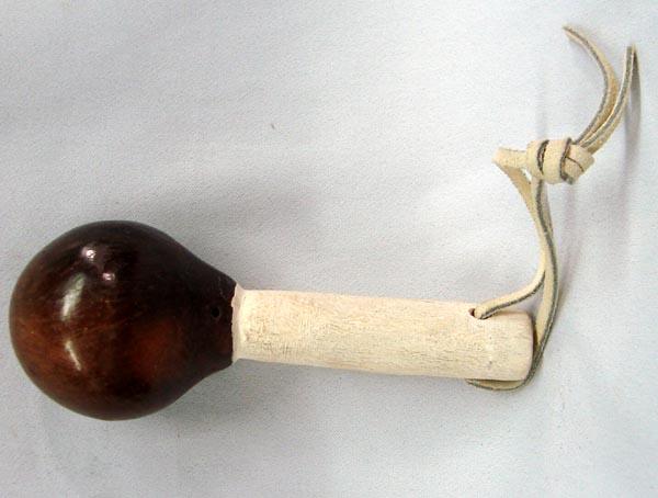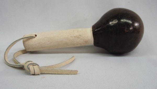 Native American Santa Clara Pottery Rattle, unusual piece, has leather strap for hanging, measures approx. 5.75'' x 2.5''. Buyers Pay Actual Shipping and Handling Charges(see terms and conditions for more information)