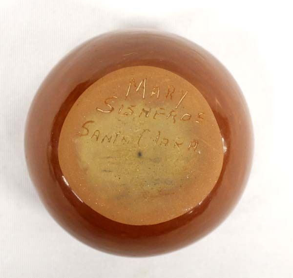 Native American Santa Clara Pottery by Mary Sisneros (b. 1937), signed by the artist and measures 2''H x 3''D, nice thick walled piece