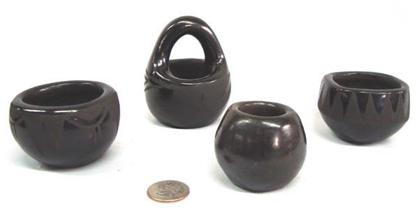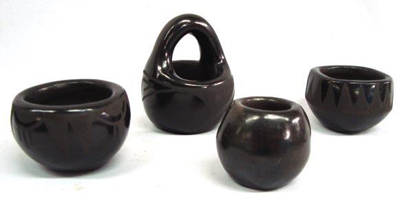 4 Pieces of Native American Santa Clara Pottery by Olaria Sisneros, largest measures approx. 3.5'' x 2.5''. Buyers Pay Actual Shipping and Handling Charges(see terms and conditions for more information)