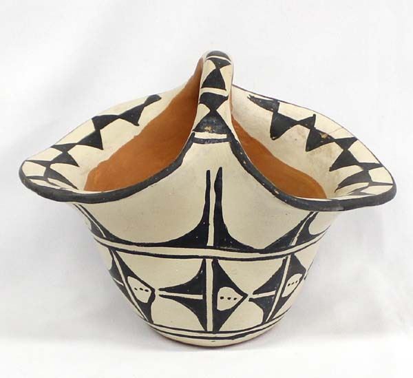 Native American Santo Domingo Pottery Basket, primitive painted designs, measures 7'' x 10'' x 7.25''