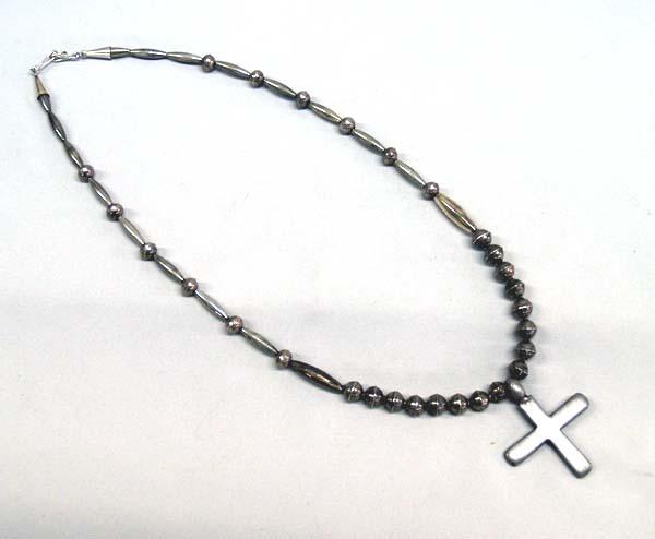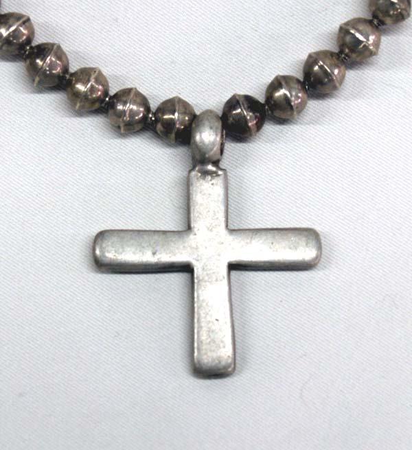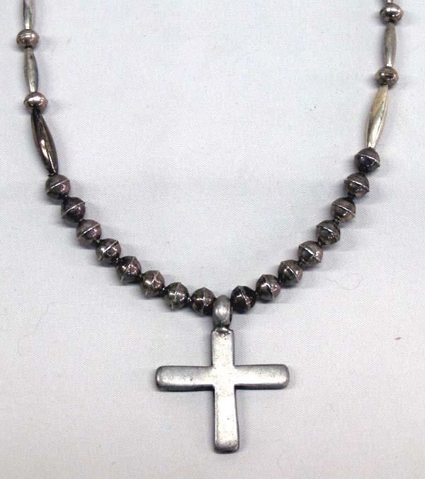 Native American Pueblo Silver Cross Necklace, cross is from the 18th Century, hollow silver beads and findings, measures approx. 25'' end to end and cross 2'' x 1.75''. Buyers Pay Actual Shipping and Handling Charges(see terms and conditions for more information)