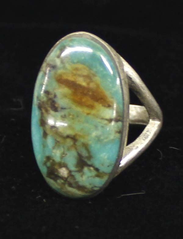 Native American Silver & Morenci Turquoise Ring, size 6.5, stunning turquoise cabochon that measures 1''L x .5''W, looks beautiful on