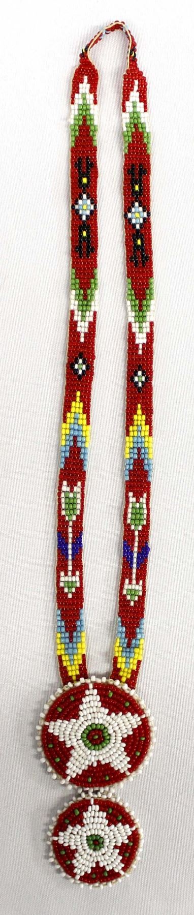 Native American Sioux Beaded Necklace, measures 20''L end to end and pendant measures 4''L