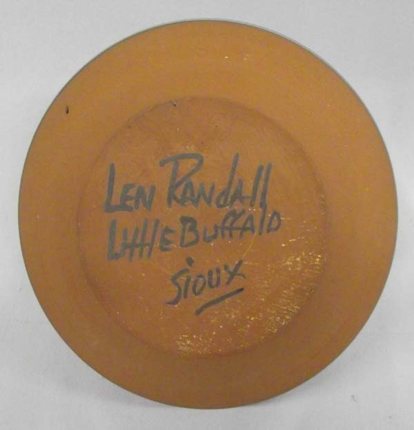 Native American Sioux pottery signed Len Randall ''Little Buffalo'' Sioux, thick walled measures approx. 4 x 5.5 inches. Buyers Pay Actual Shipping and Handling Charges(see terms and conditions for more information).