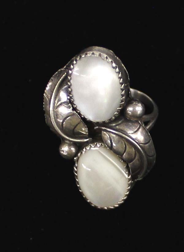 Beautiful Native American Sterling Silver & Mother of Pearl Ring, Size 8, measures 1.5''L x .75''W, from the Little White Dove Trading Post in Albuquerque, NM, very flattering on
