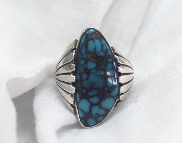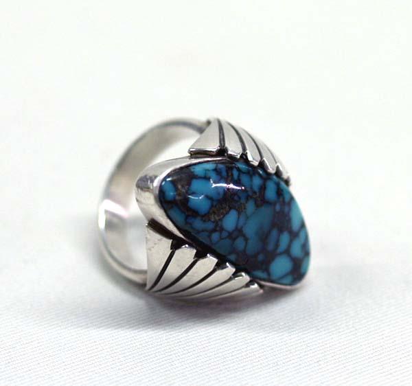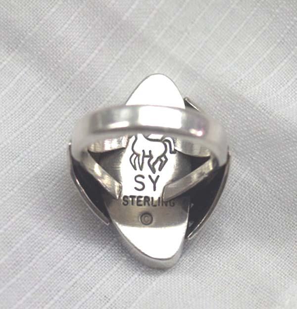 Native American Sterling and Turquoise Ring by Steve Yellowhorse. Size 6 3/4. Stone 1'' tall by 1/2'' wide. Buyers Pay Actual Shipping and Handling Charges(see terms and conditions for more information)