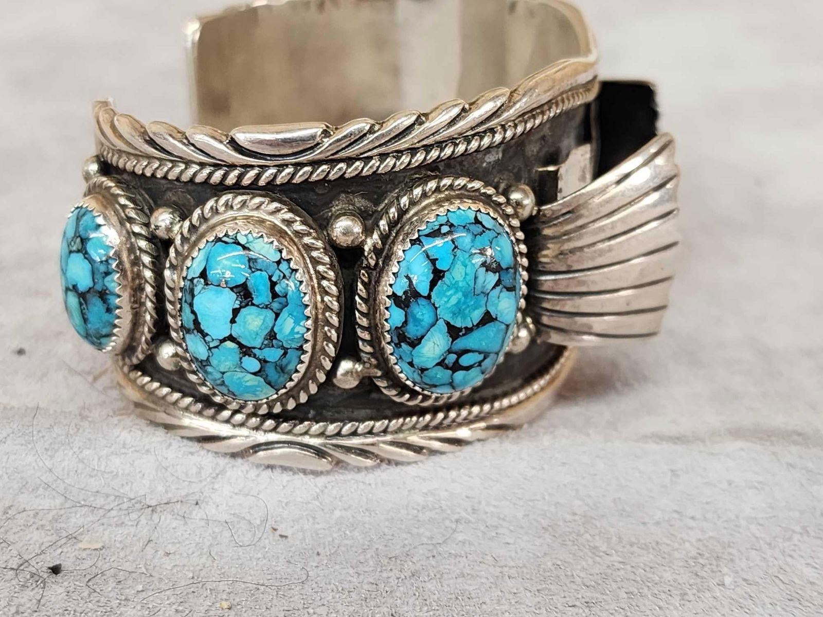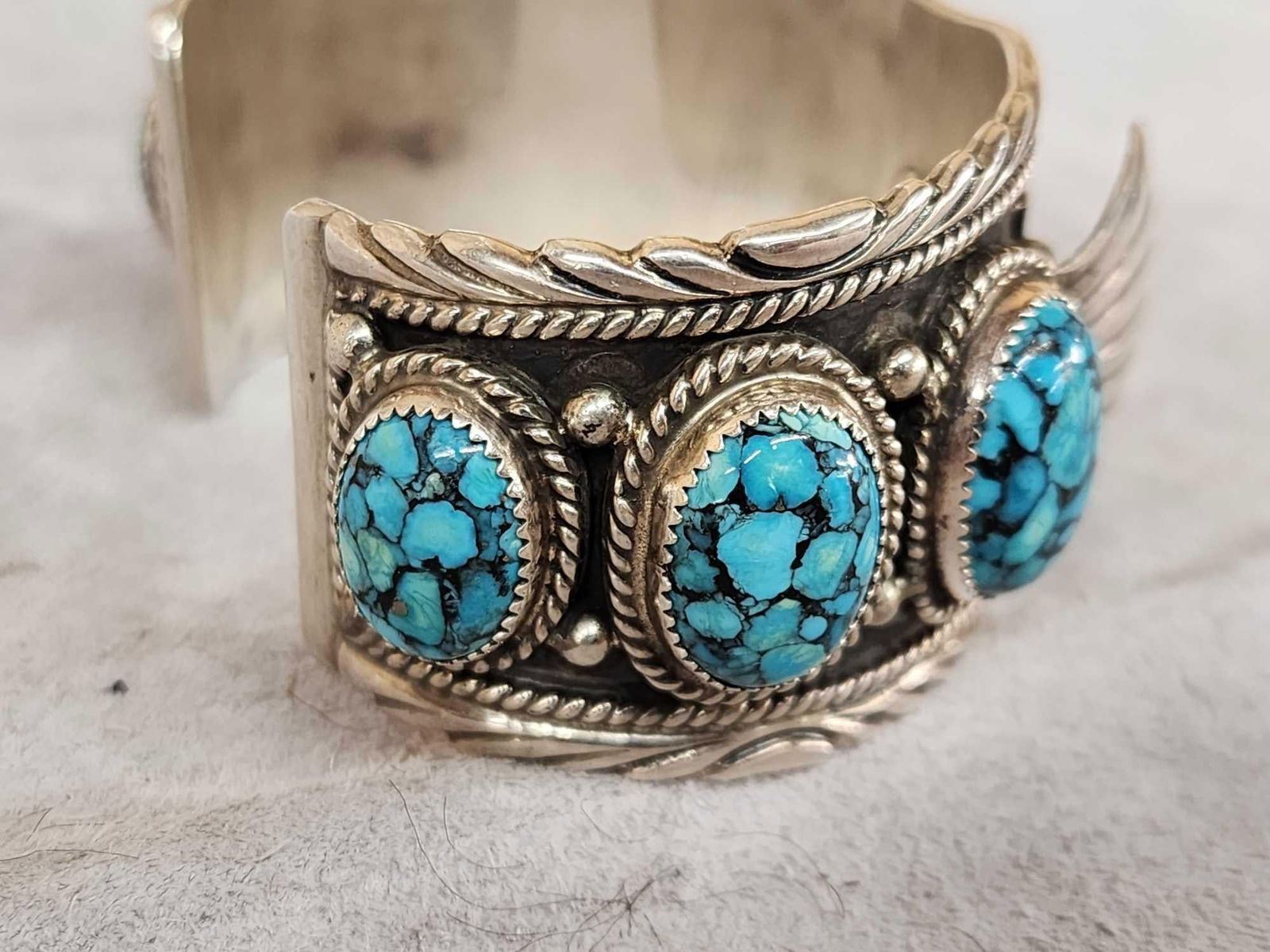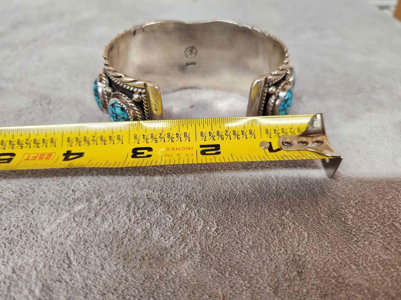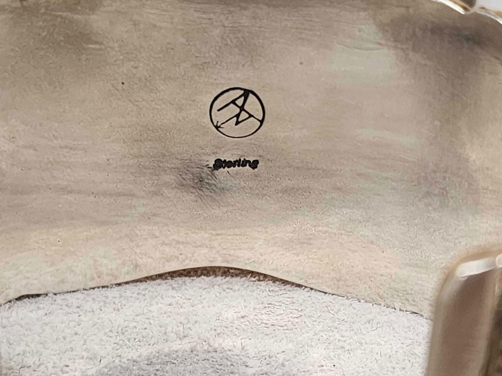 73.16 Fine detailed tooling with Turquoise The prominent hallmark is a stylized "T Jon" within a circle, identifying the artisan as Tillie Jon, a Navajo Native American