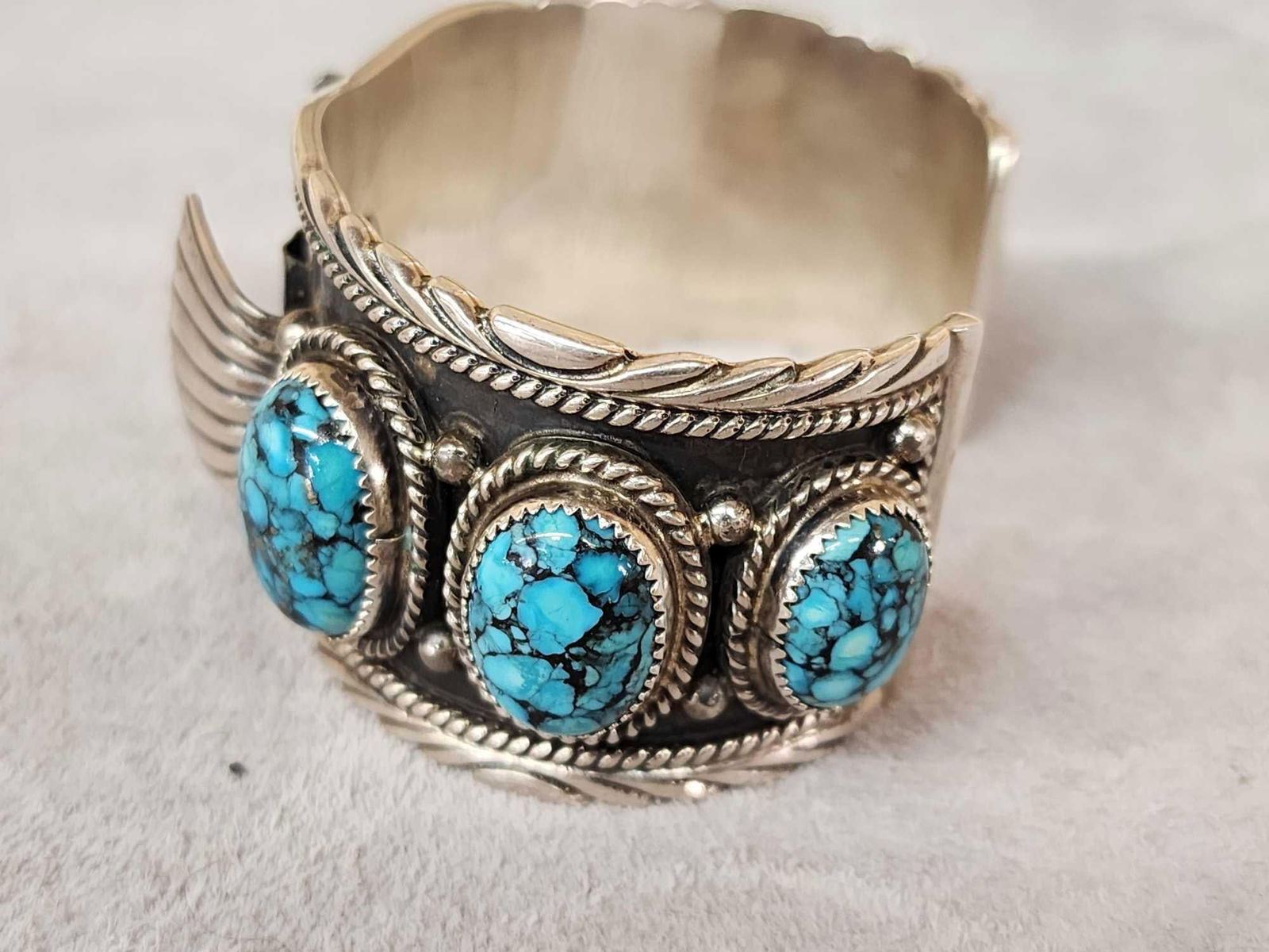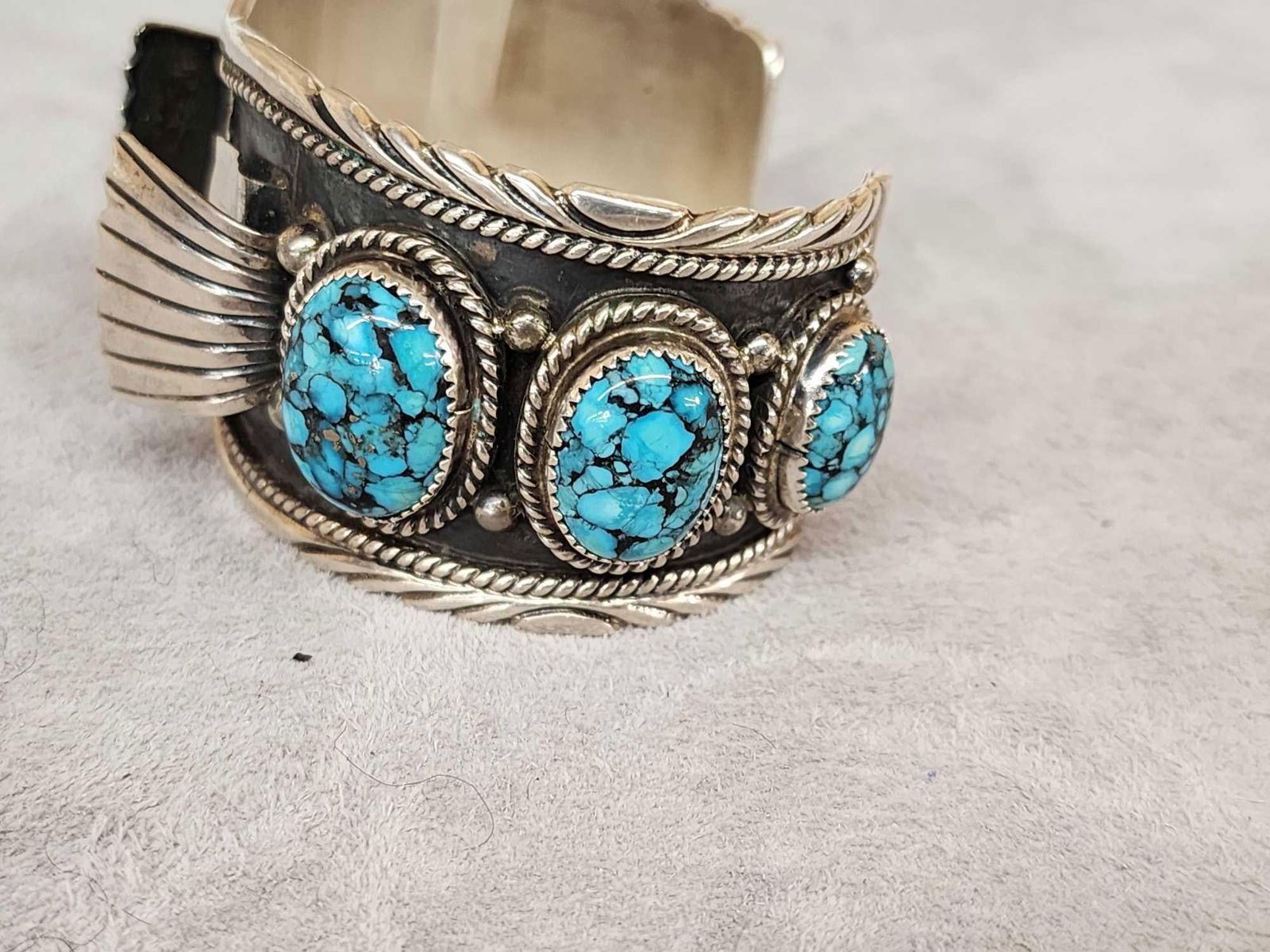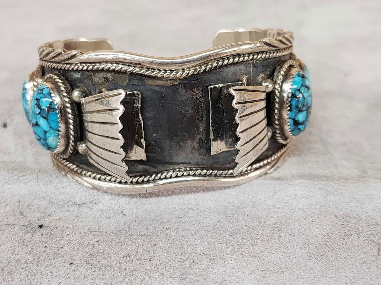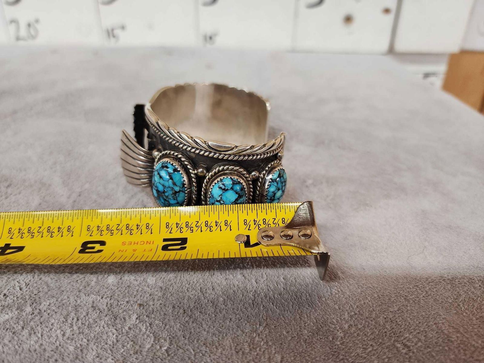 73.16 Fine detailed tooling with Turquoise The prominent hallmark is a stylized "T Jon" within a circle, identifying the artisan as Tillie Jon, a Navajo Native American