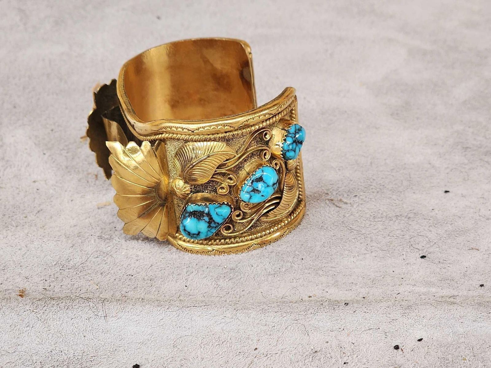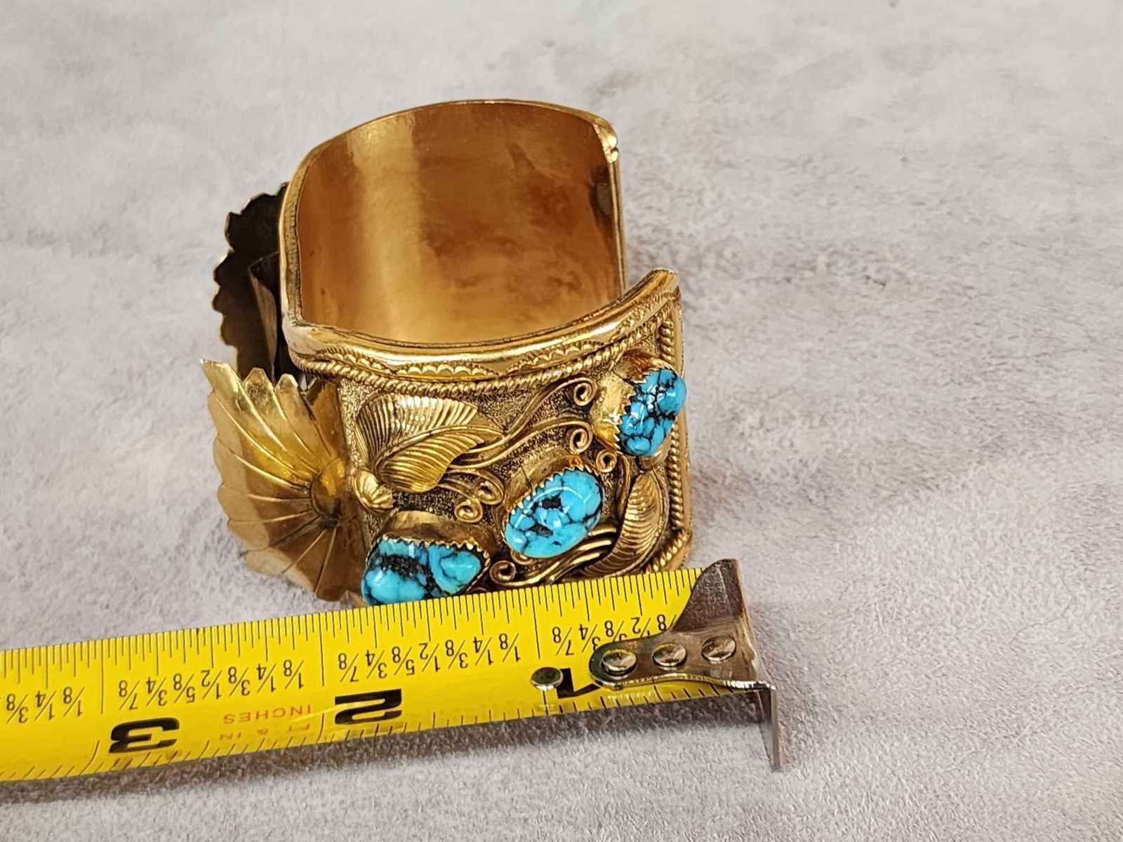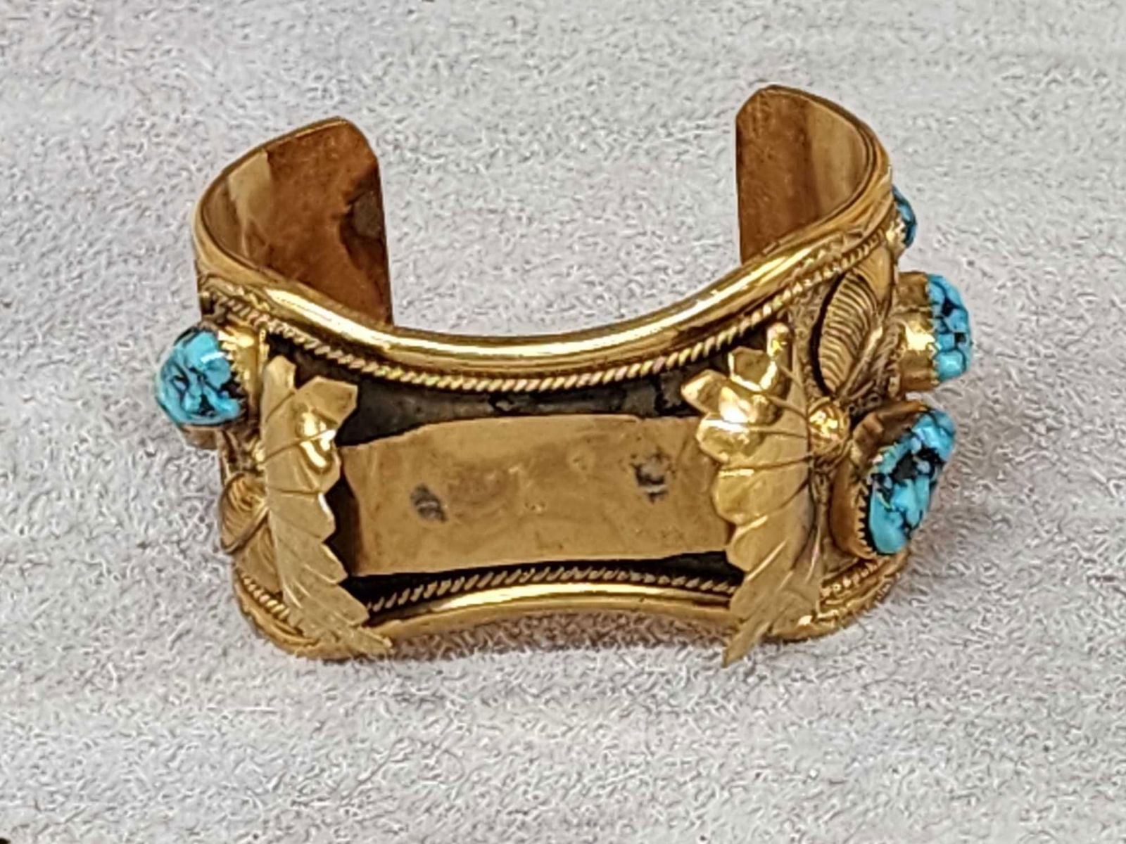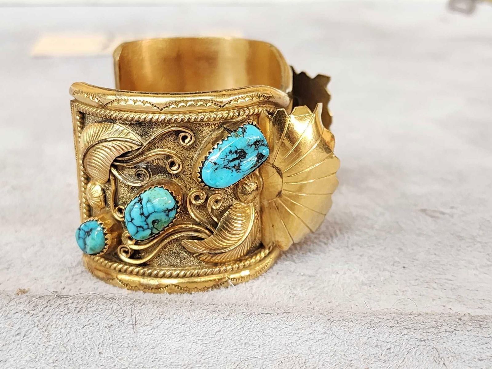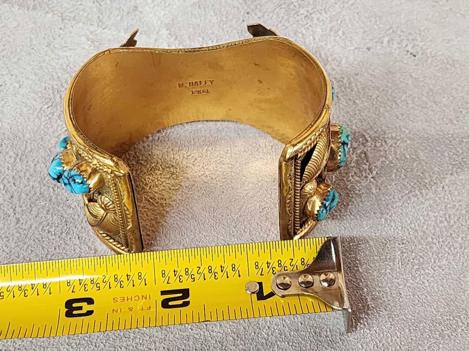 73.17 Finely detailed gold plated with Turquoise signed by the maker M. Haley