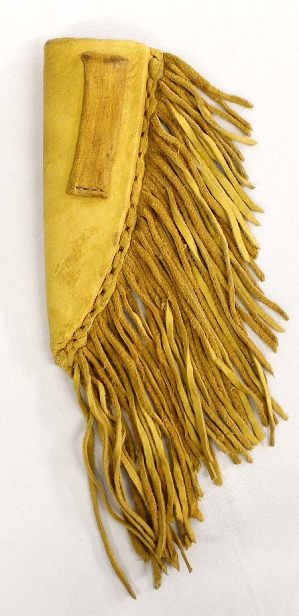 Native American Suede Leather Knife Belt Sheath, measures 8'' x 3'' which does not include the fringe
