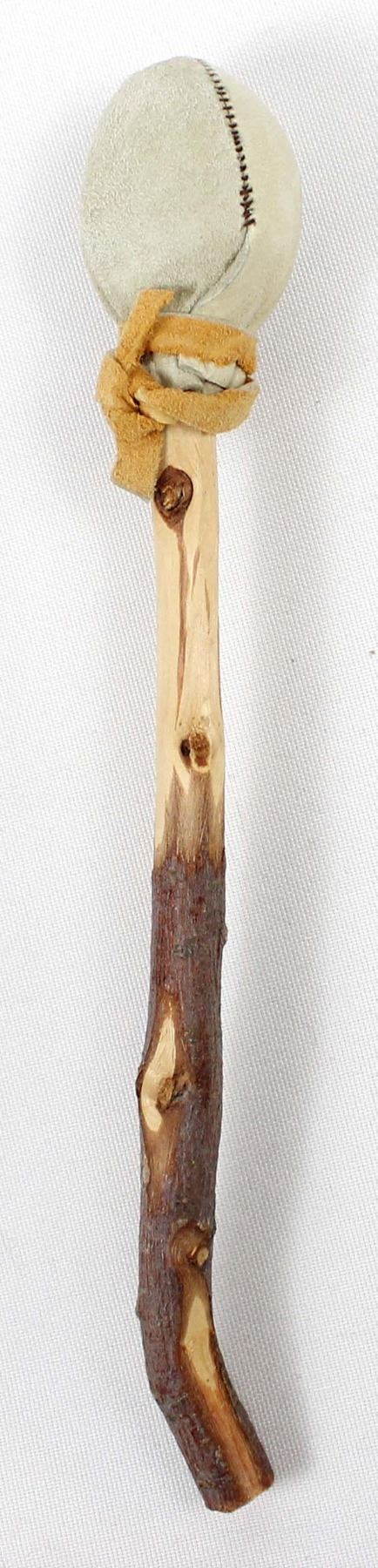 Native American Taos Hide and Log Drum with Beater, measures 6'' x 6'' and beater measures 8''L