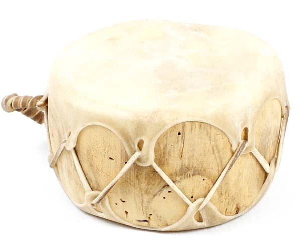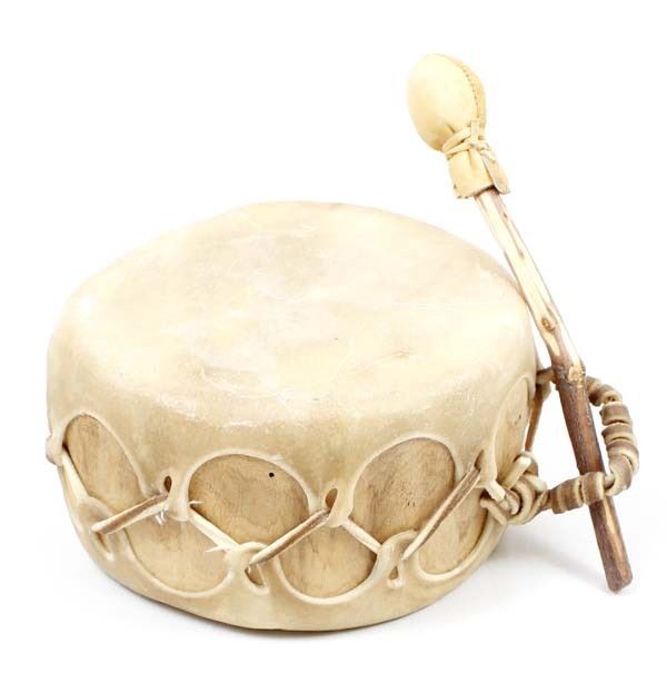 Native American Taos Hide and Log Drum with Beater, 4'' x 6.5''