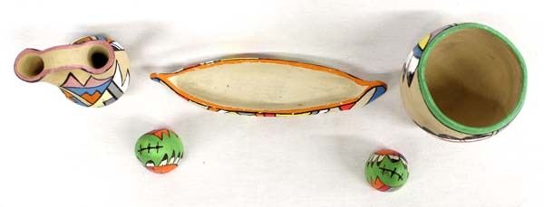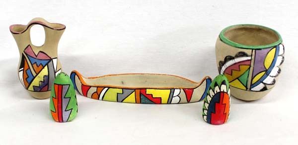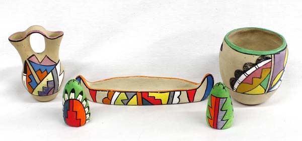 Vintage Native American Tesuque Poster Paint Pottery, longest measures 8''L