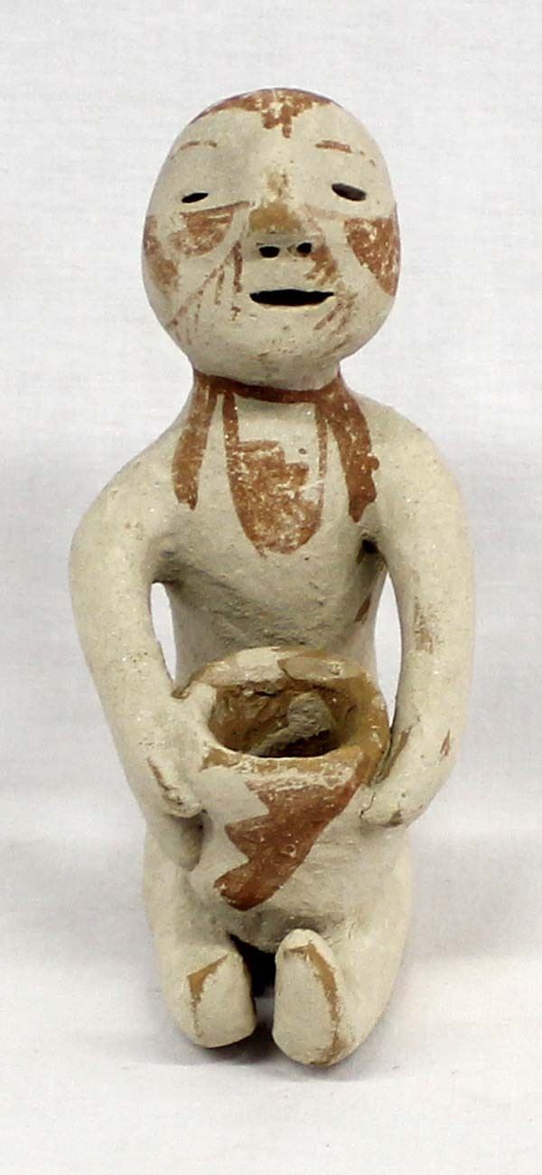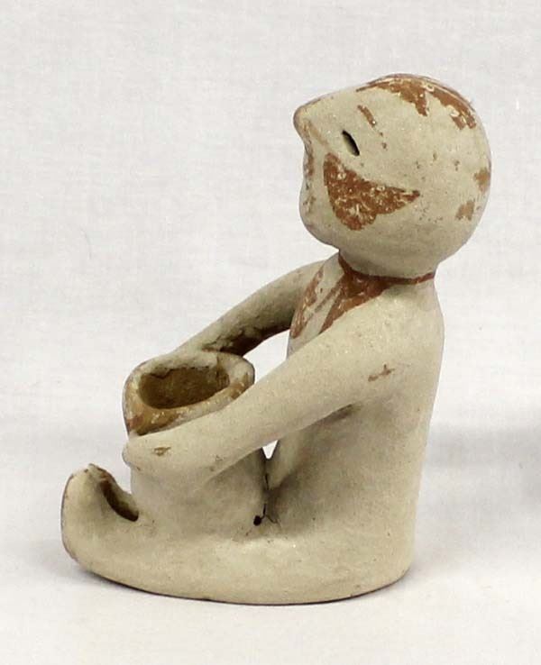 Native American Tesuque Pottery Rain God, measures 2.5'' x 3'' x 5''