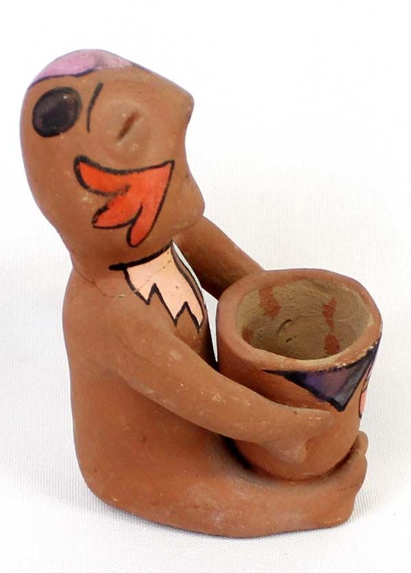 Native American Tesuque Pottery Rain God, measures 4.5'' x 3.5'' x 2.5'', head has been glued back onto neck