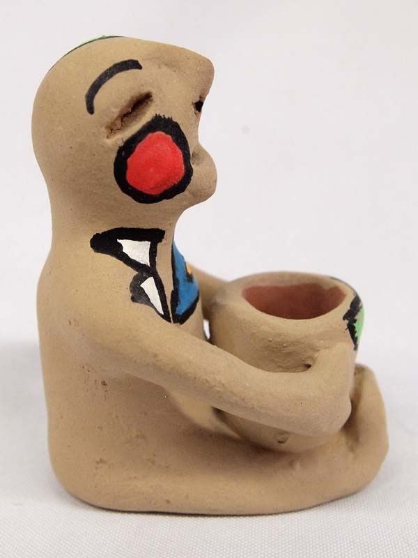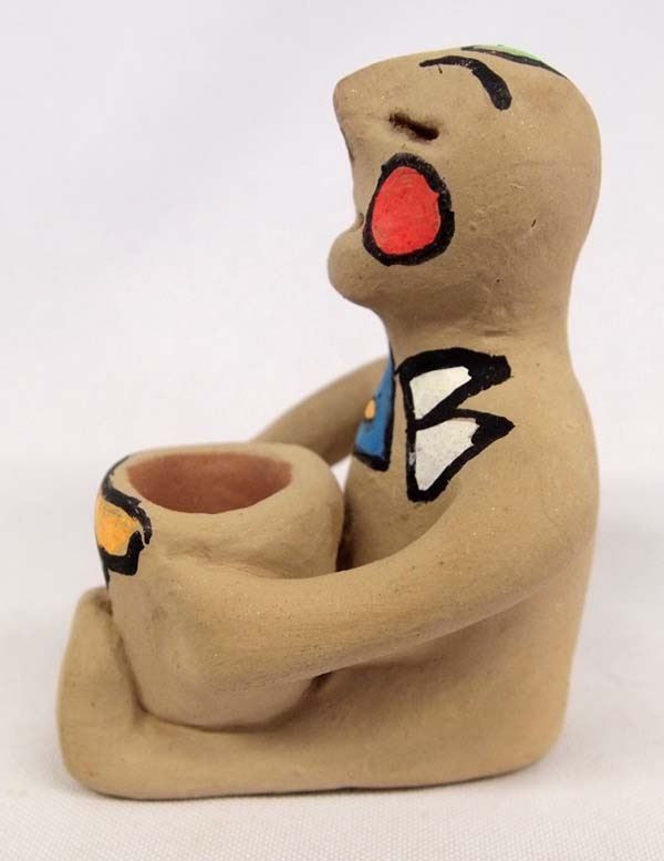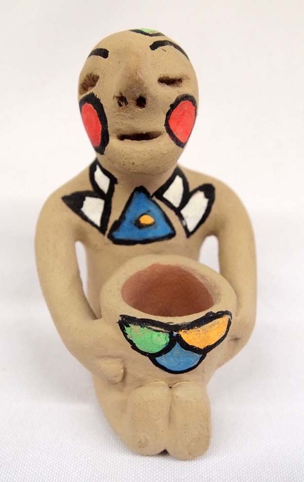 Native American Tesuque Pueblo Pottery Rain God, poster paint, measures 3'' x 3'' x 3.5''
