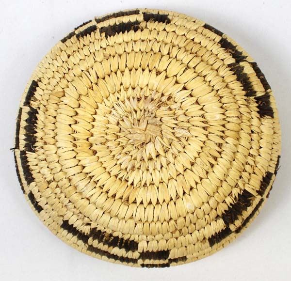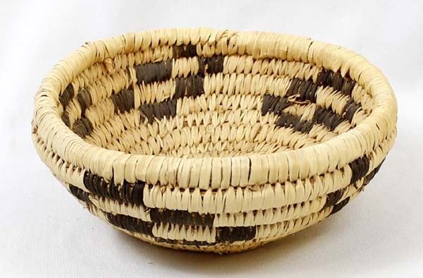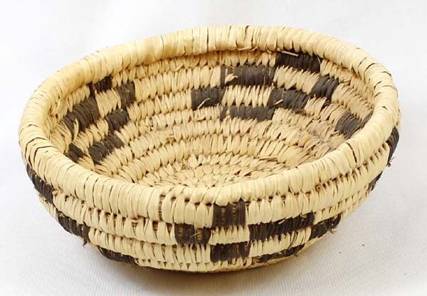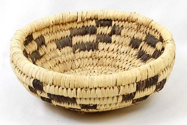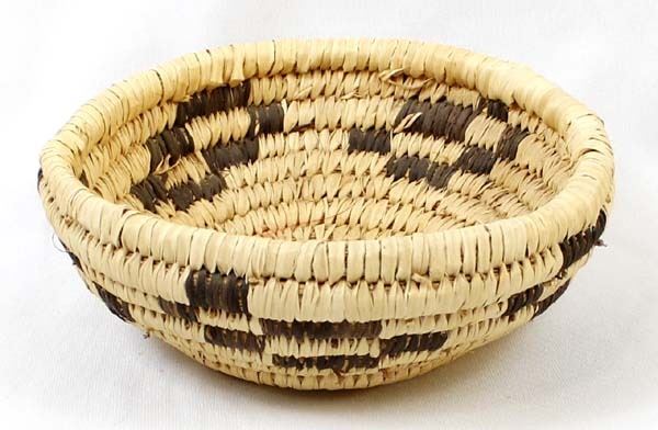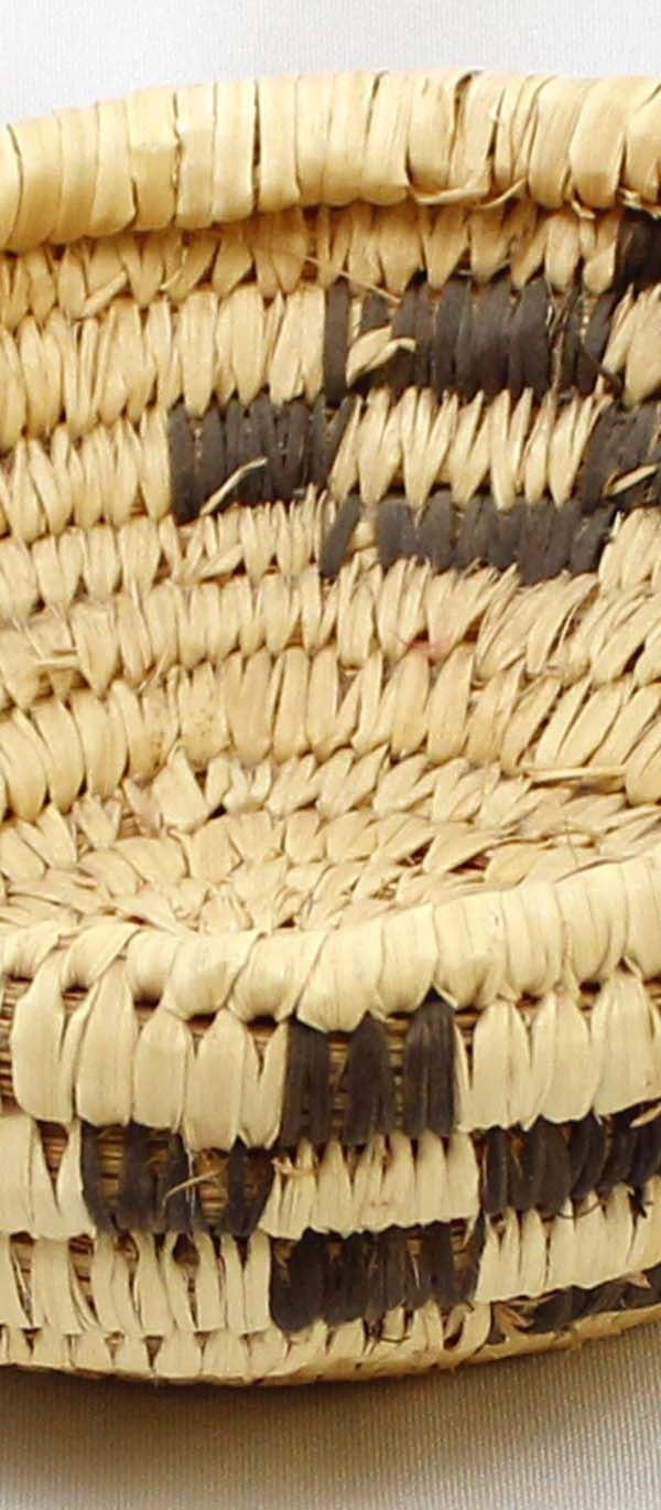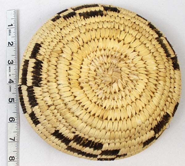 Native American Tohono O'odham Basket, measures 3''H x 9''D, traditional coyote track designs