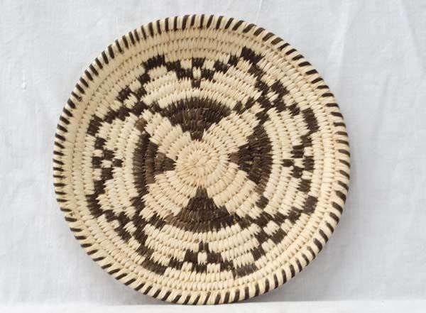 Native American Tohono O'odham Basketry Tray, measures 1''H x 8.5''D, Morning Star Design