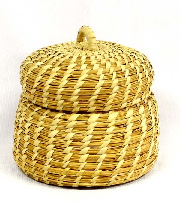 Native American Tohono O'odham Lidded Basket by Lucie Valisto, measures 5''H x 5.5''D, comes with artist's card