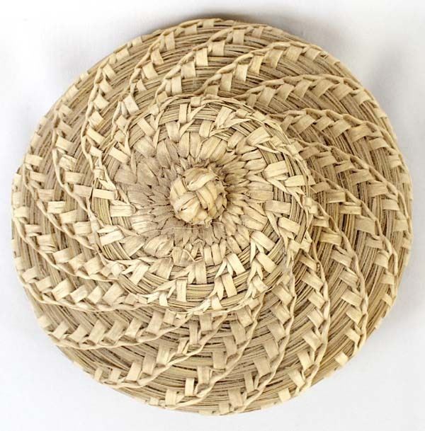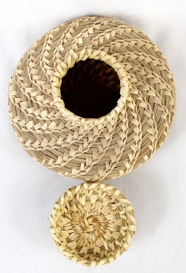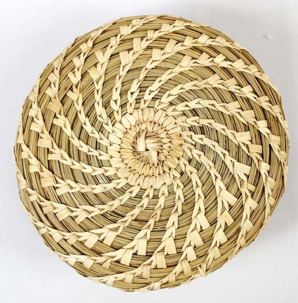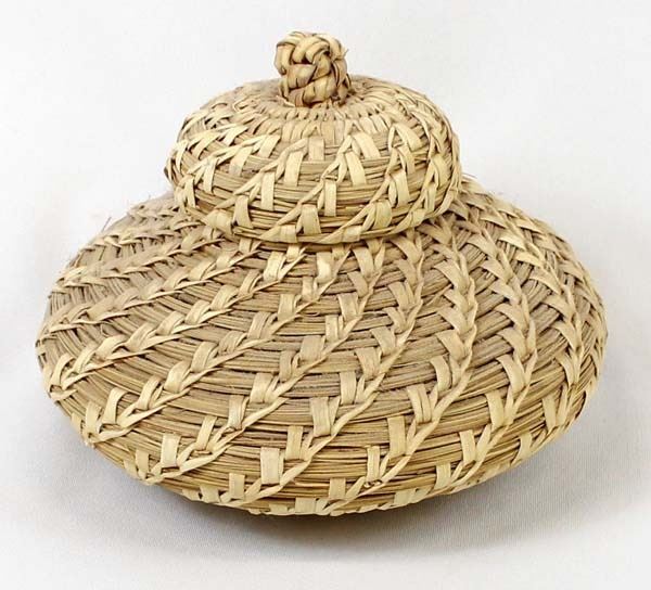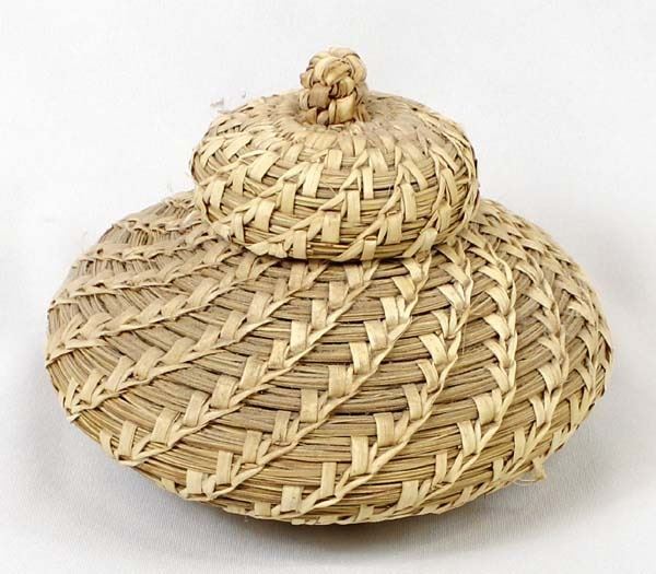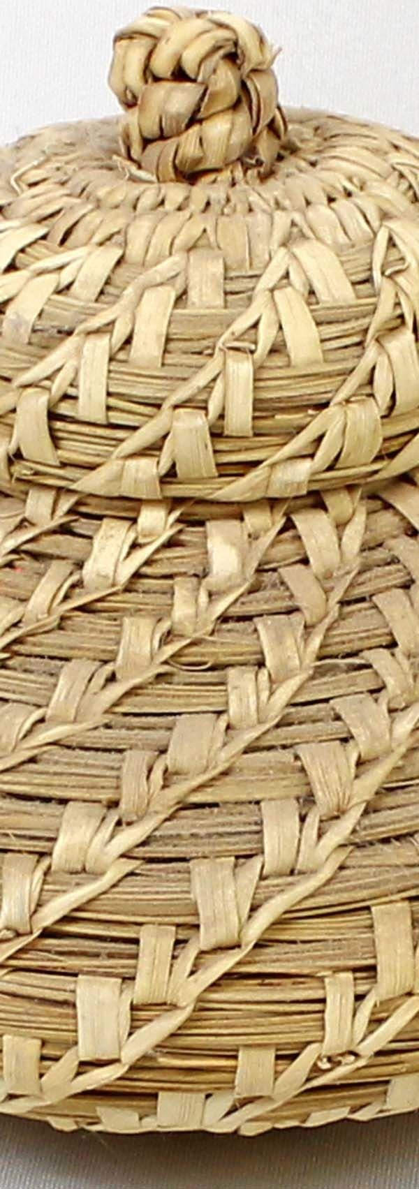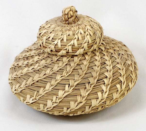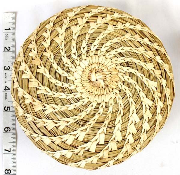 Native American Tohono O'odham Lidded Basket, measures 5'' x 8'', wheat design