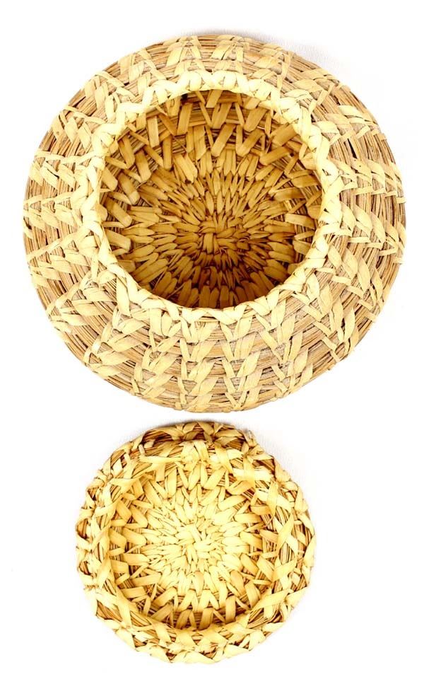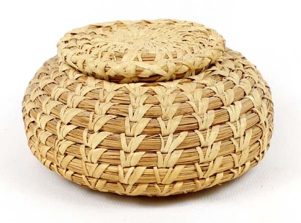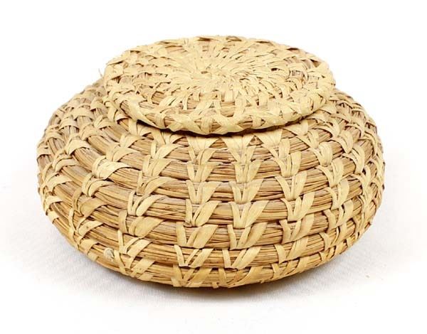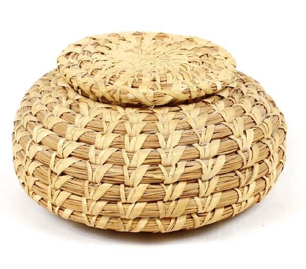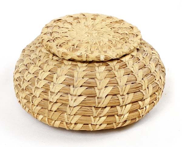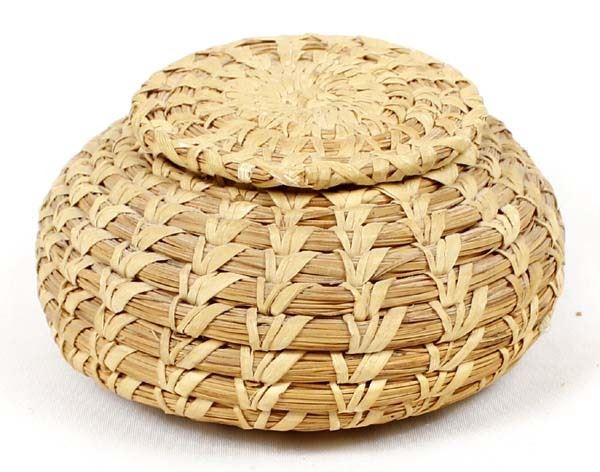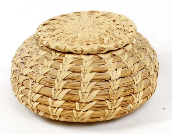 Native American Tohono O'odham Lidded Basket, measures 6'' x 3.5''