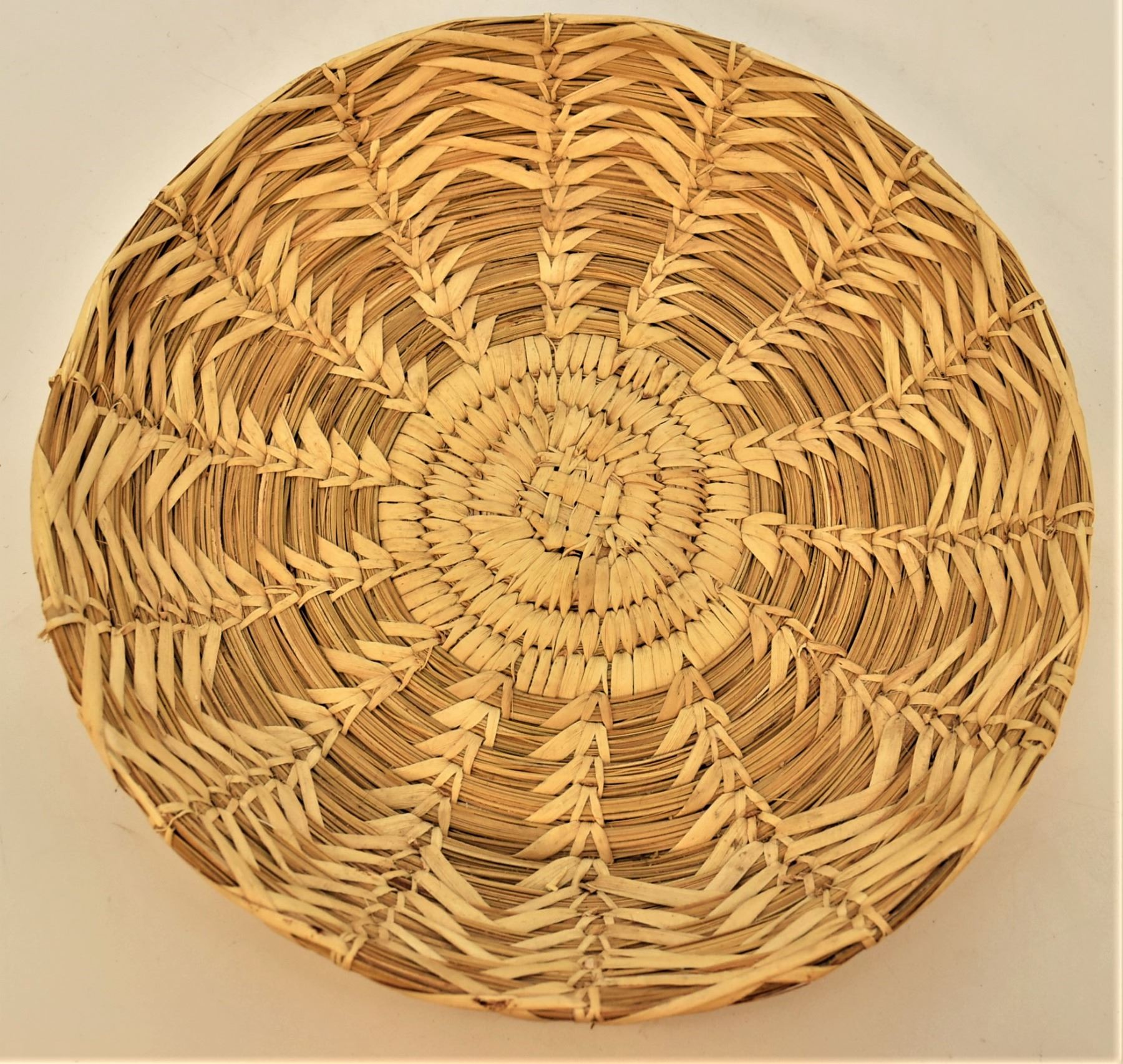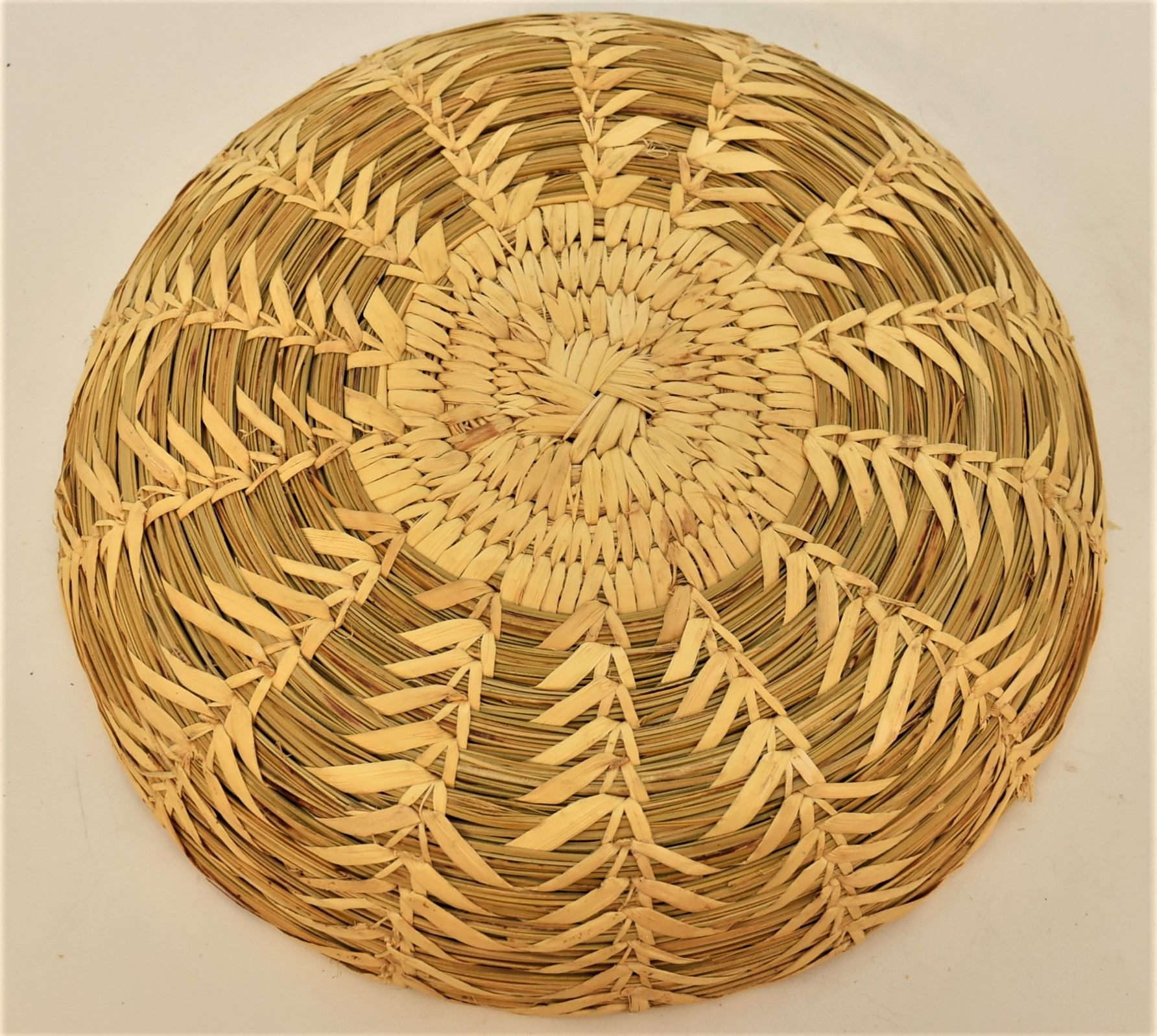 Native American Tohono O'odham Shallow Basket, measures 1.75'' x 9.5''D, wheat stitch, made of bear grass and yucca