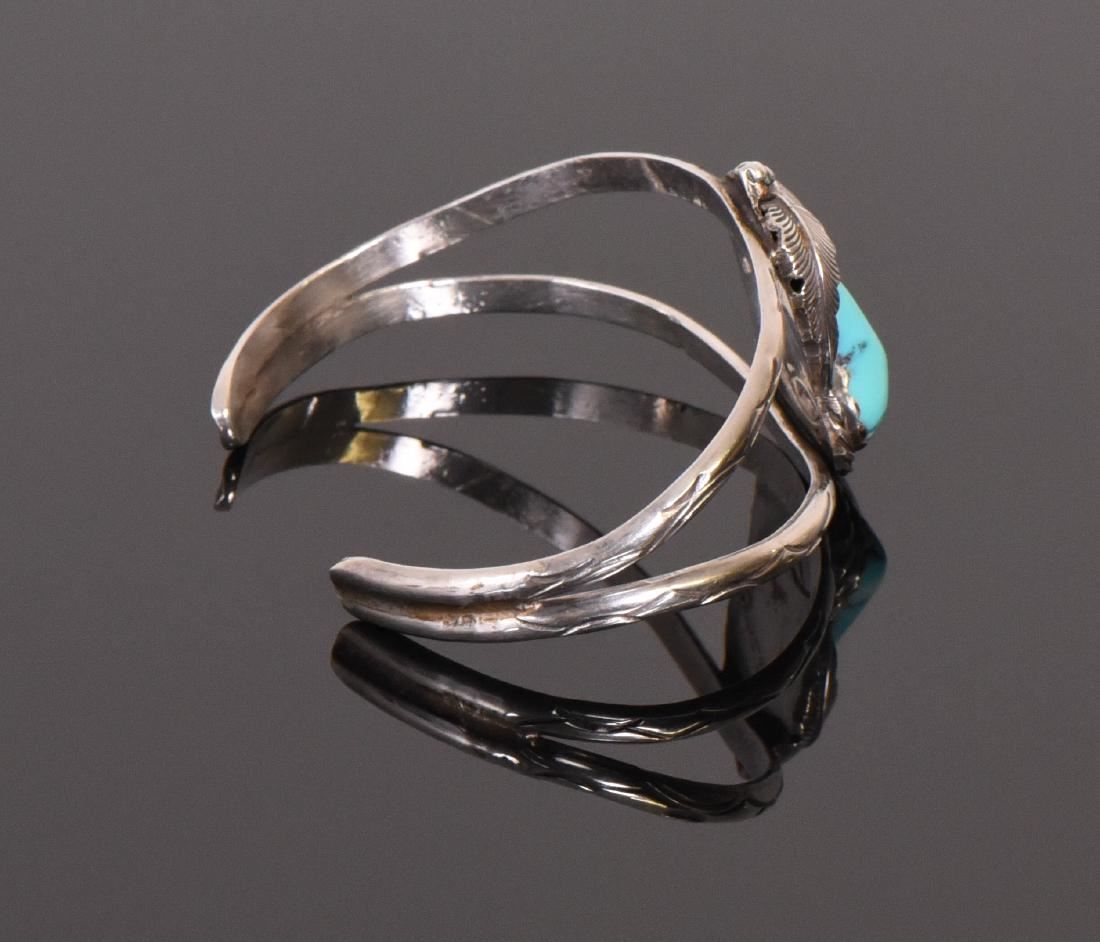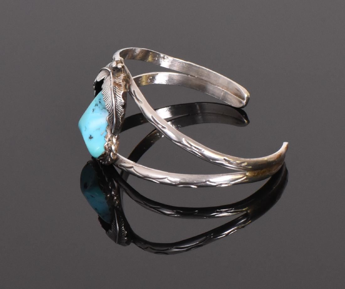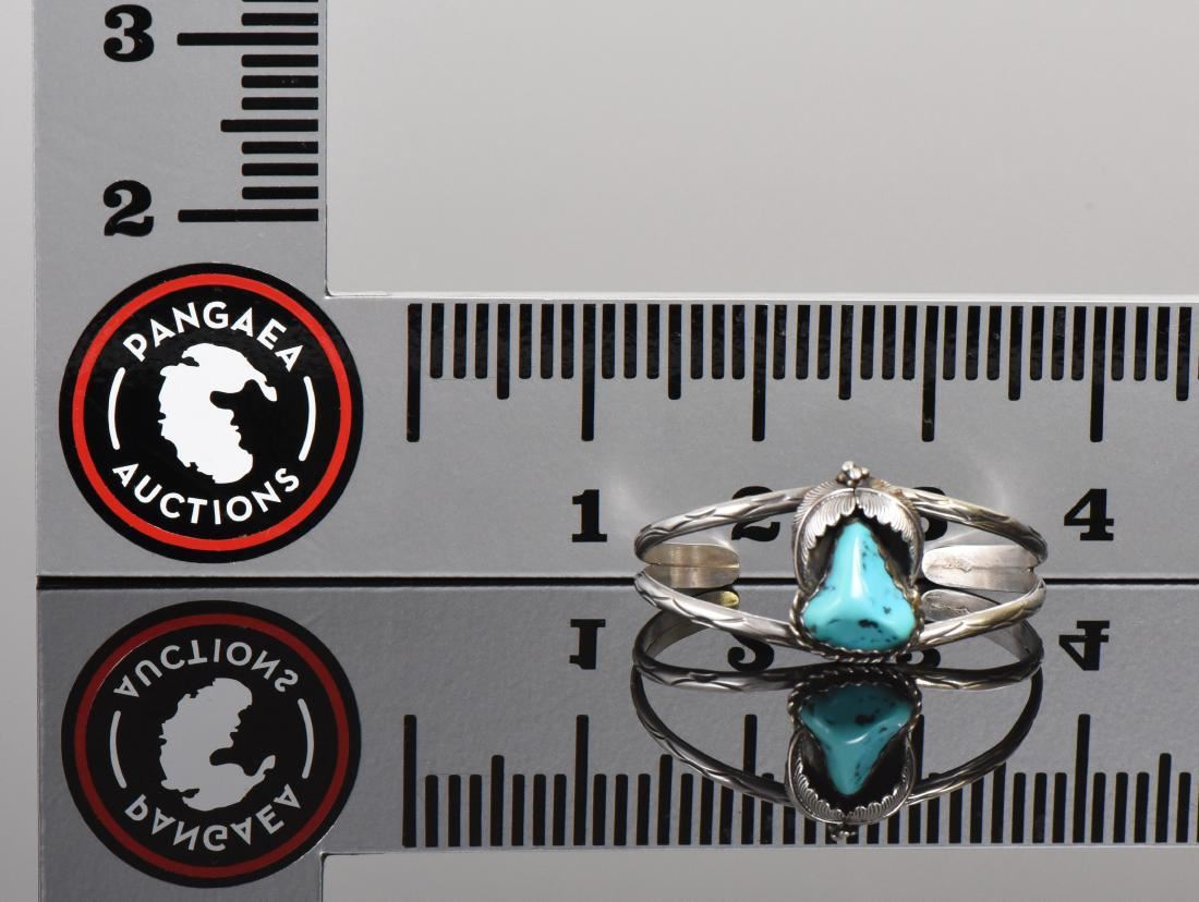 Native American Turquoise Center Stone 925 Sterling Silver Cuff Bracelet with Picto Makers Hallmark. Silver Tested. Estimated more than 50 yrs old. Native Americans also known as American Indians or just simply Indians are considered to be people whose pre-Columbian ancestors were indigenous to the lands within the nation's modern boundaries. These peoples were composed of numerous distinct tribes, bands, and ethnic groups, and many of these groups survive intact today as partially sovereign nations. The Iroquois, living around the Great Lakes and extending east and north, used strings or belts called wampum that served a dual function: the knots and beaded designs mnemonically chronicled tribal stories and legends, and further served as a medium of exchange and a unit of measure. The keepers of the articles were seen as tribal dignitaries. Pueblo peoples crafted impressive items associated with their religious ceremonies. Kachina dancers wore elaborately painted and decorated masks as they ritually impersonated various ancestral spirits. Sculpture was not highly developed, but carved stone and wood fetishes were made for religious use. Superior weaving, embroidered decorations, and rich dyes characterized the textile arts. Both turquoise and shell jewelry were created, as were high-quality pottery and formalized pictorial arts. Navajo spirituality focused on the maintenance of a harmonious relationship with the spirit world, often achieved by ceremonial acts, usually incorporating sand painting. The colors made from sand, charcoal, cornmeal, and pollen depicted specific spirits. These vivid, intricate, and colorful sand creations were erased at the end of the ceremony. (Wikipedia) Size: See Ruler Photo. (Photos Represent The Condition Of The Lot.)