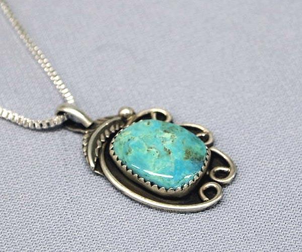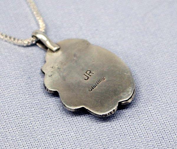 Native American Turquoise Silver Pendant Necklace by JR. Hallmark on back, ''JR Sterling.'' Pendant is 1'' and chain is 15''. Buyers Pay Actual Shipping and Handling Charges(see terms and conditions for more information).