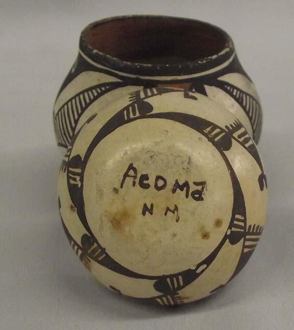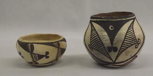 2 Native American Vintage Acoma Miniature Ollas. Larger one measures 2.25''Hx2.75''W. Buyers Pay Actual Shipping and Handling Charges(see terms and conditions for more information).