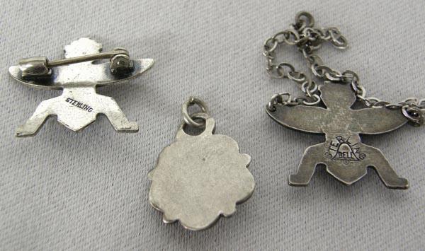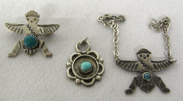 3 Native American Navajo Silver & Turquoise Vintage Charms, 2 Knifewing and 1 Floral, largest measures .75'' x .75''. Buyers Pay Actual Shipping and Handling Charges(see terms and conditions for more information).