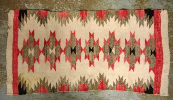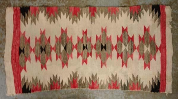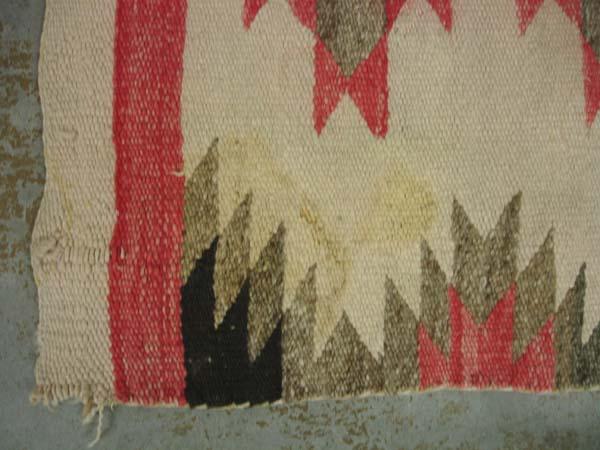 Native American Vintage Navajo Rug. Has a stain and some fraying as shown in photo. Measures 54''x 26.5''. Buyers Pay Actual Shipping and Handling Charges(see terms and conditions for more information).
