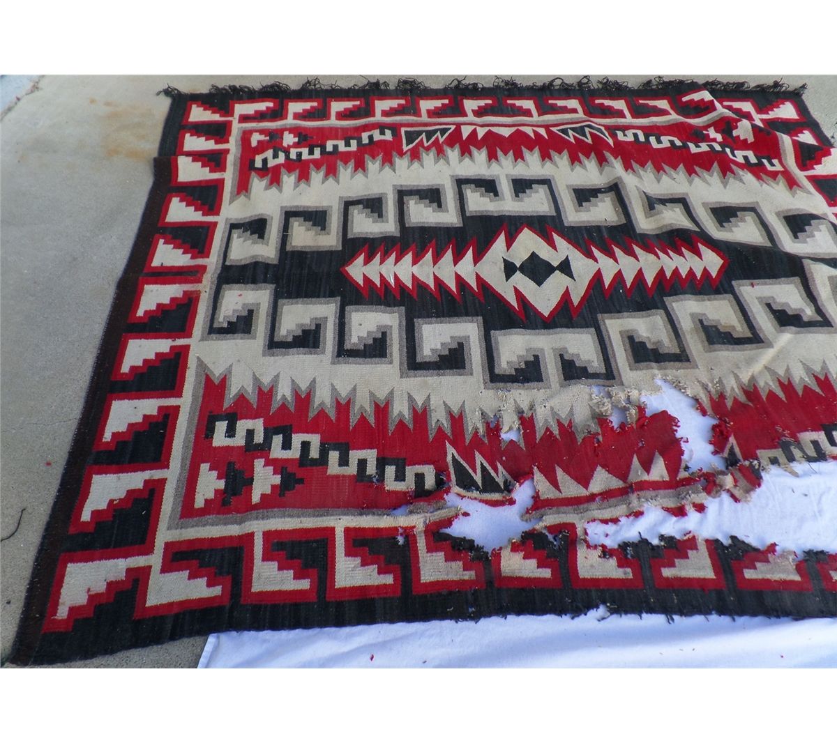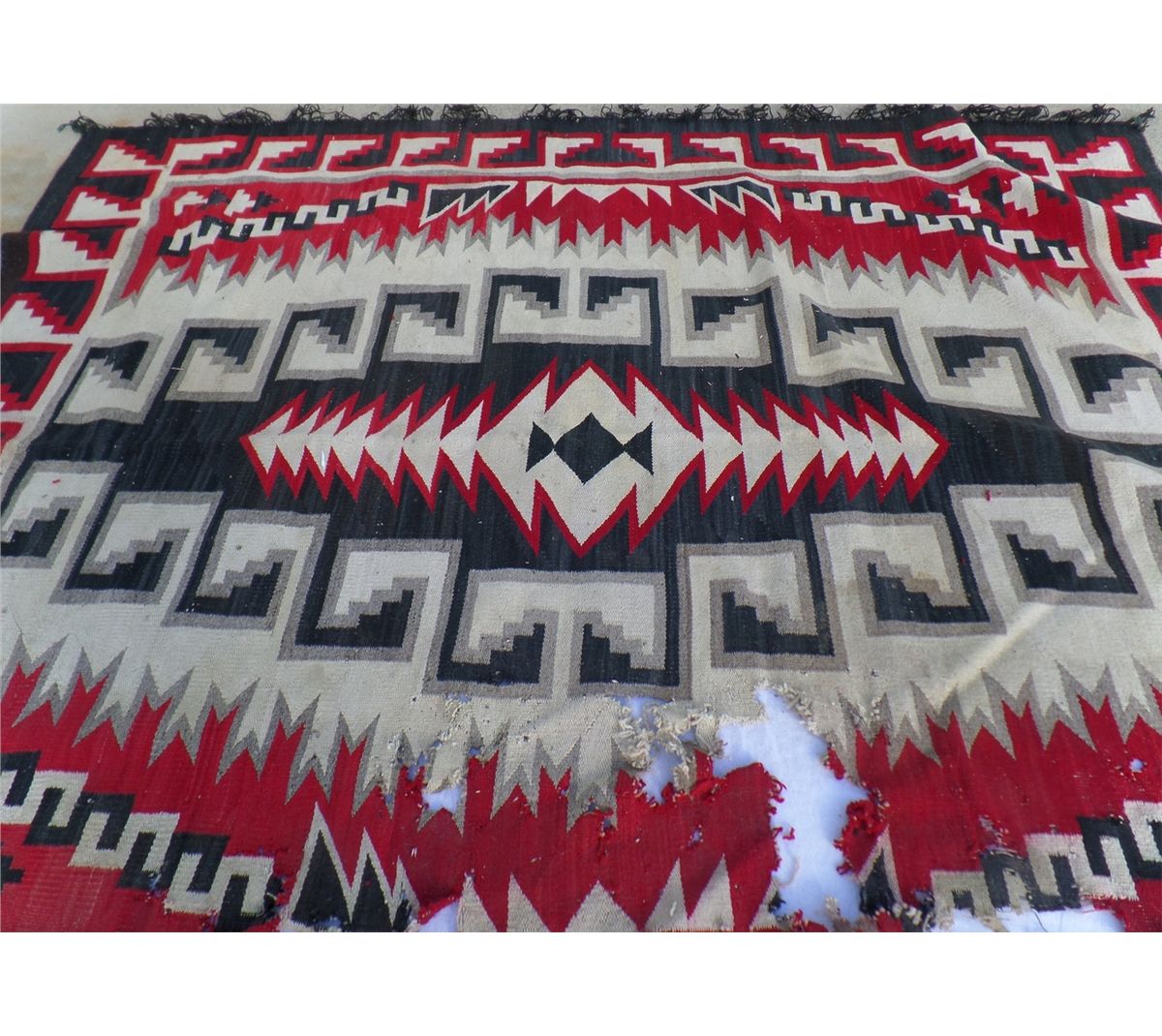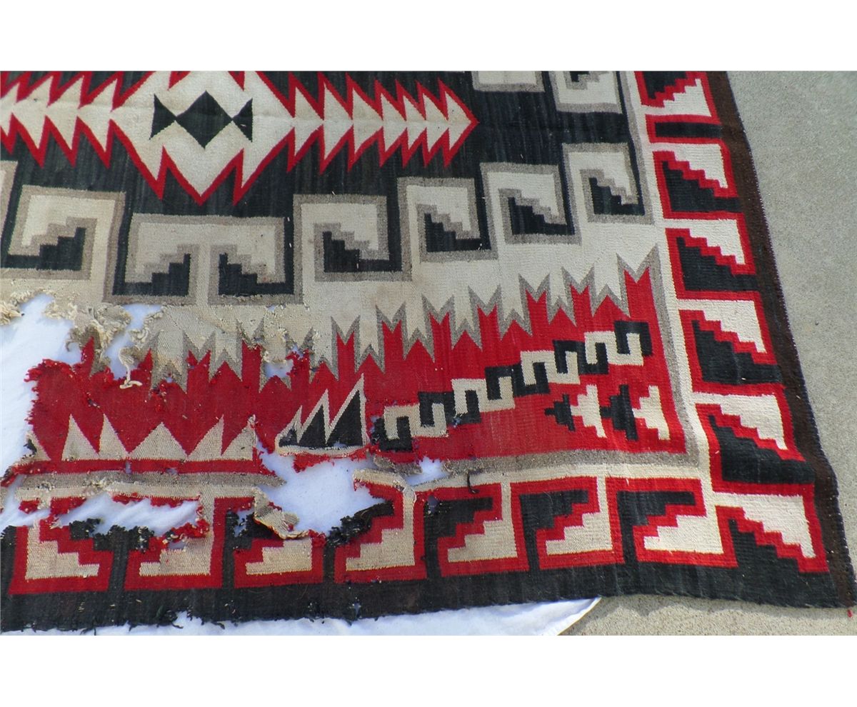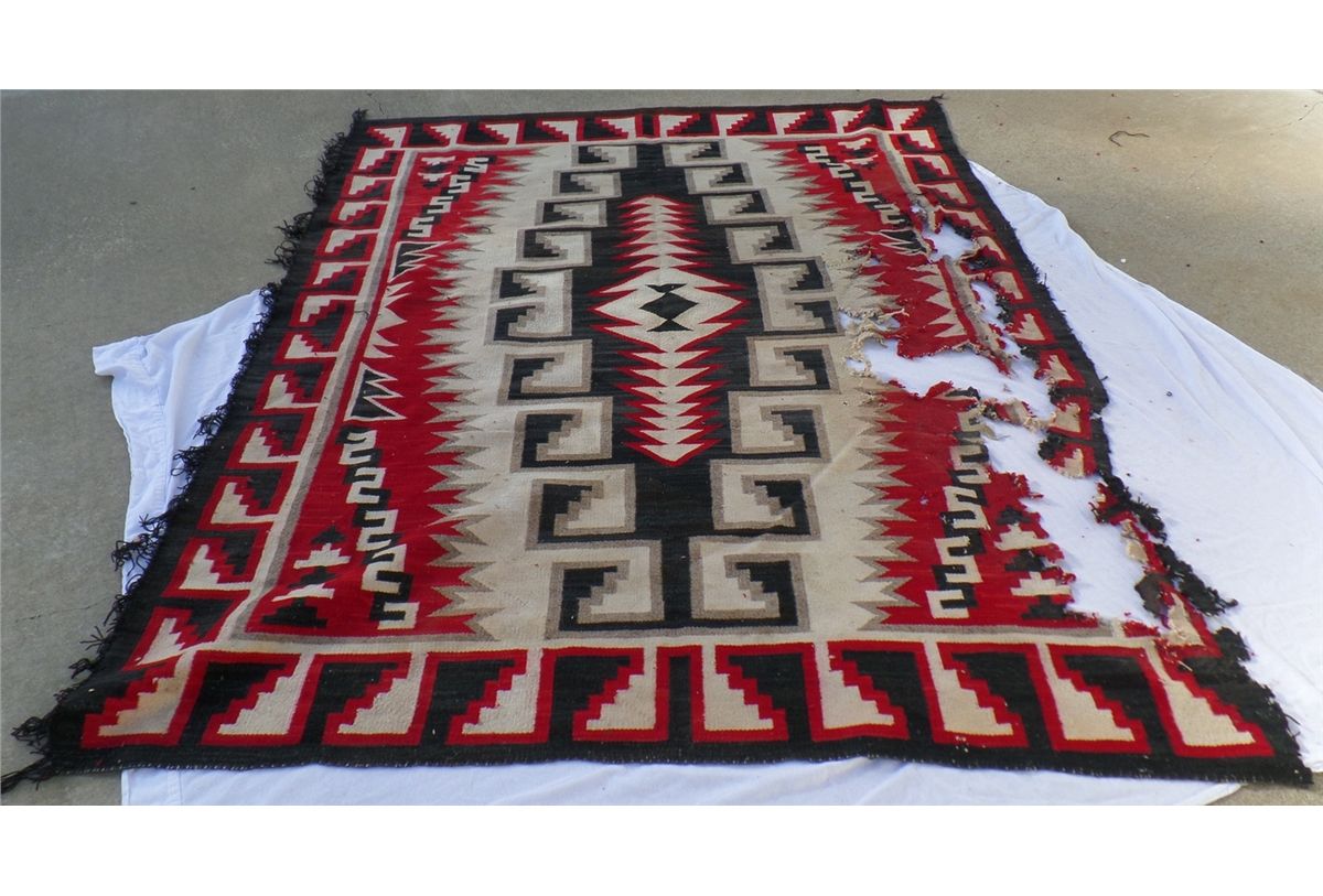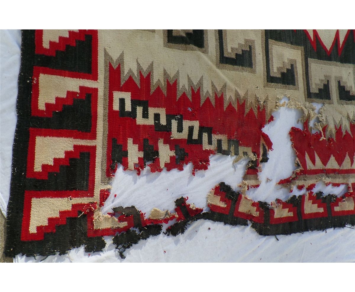 Native American Weaving measures 74" wide by 90" tall. Condition: Bad condition. Shipping: $30.