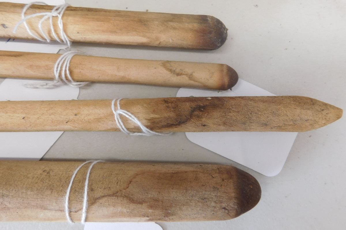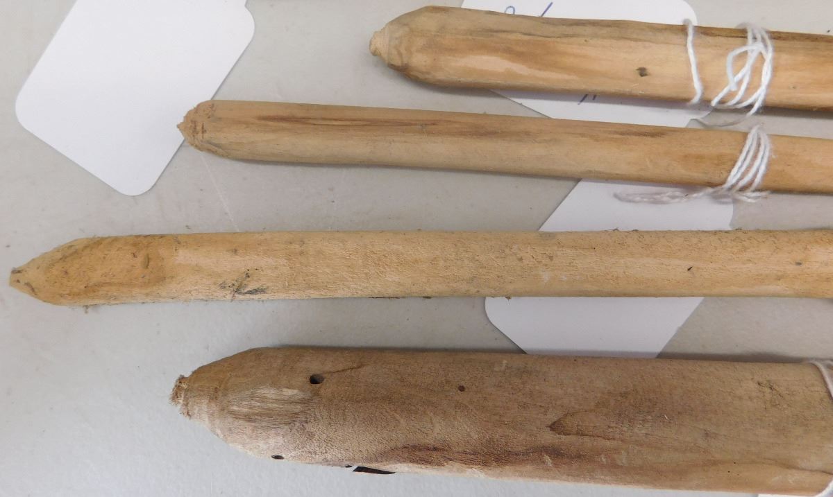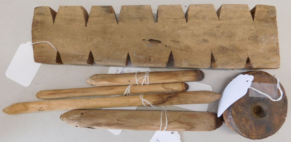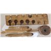 Native American Wood Fire Starter, circa early 20th century. Made of cottonwood, smallest items measure 3.5" and largest 13.5". From Arizona. The fire stick was spun until it starts fire by friction. Leather cord is missing to spin the shaft. Condition: Used, see images. Shipping: $24.00