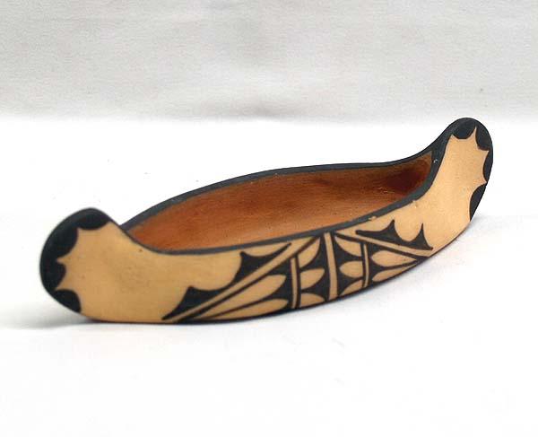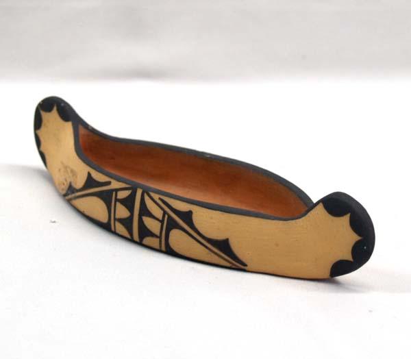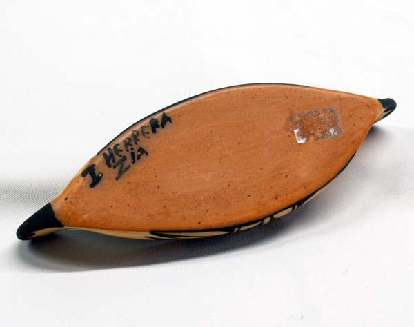 Native American Zia Pottery Canoe by I. Herrera, measures approx. 1 1/2''H x 6 3/4''L x 2 1/4''W. Signed on the bottom by I. Herrera. Buyers Pay Actual Shipping and Handling Charges(see terms and conditions for more information).