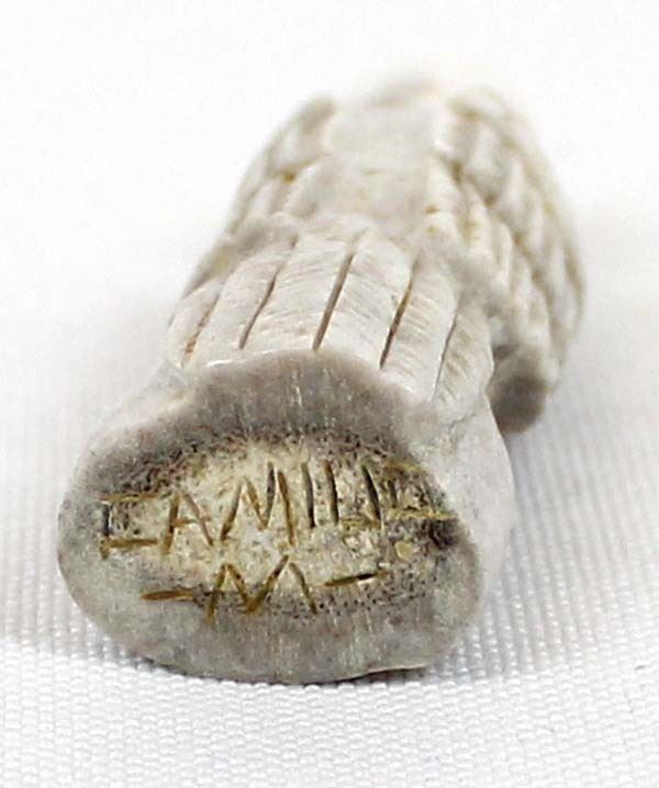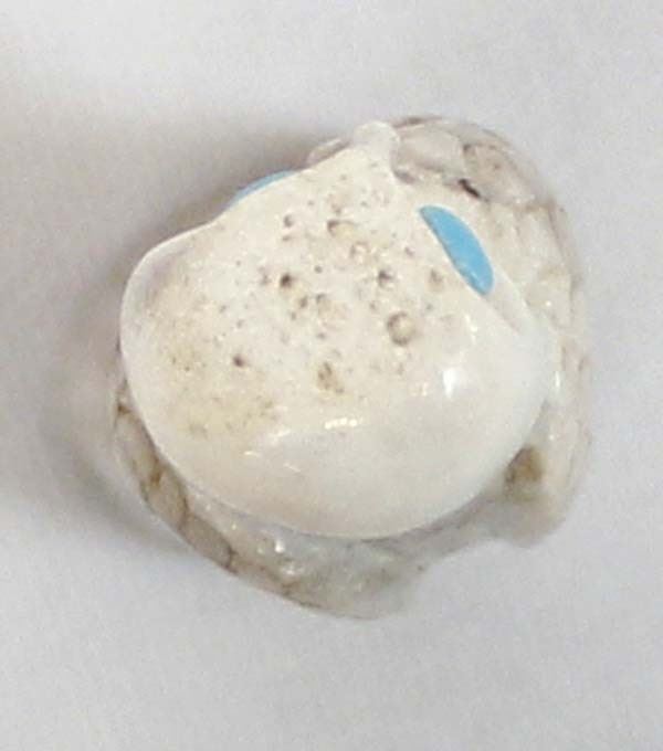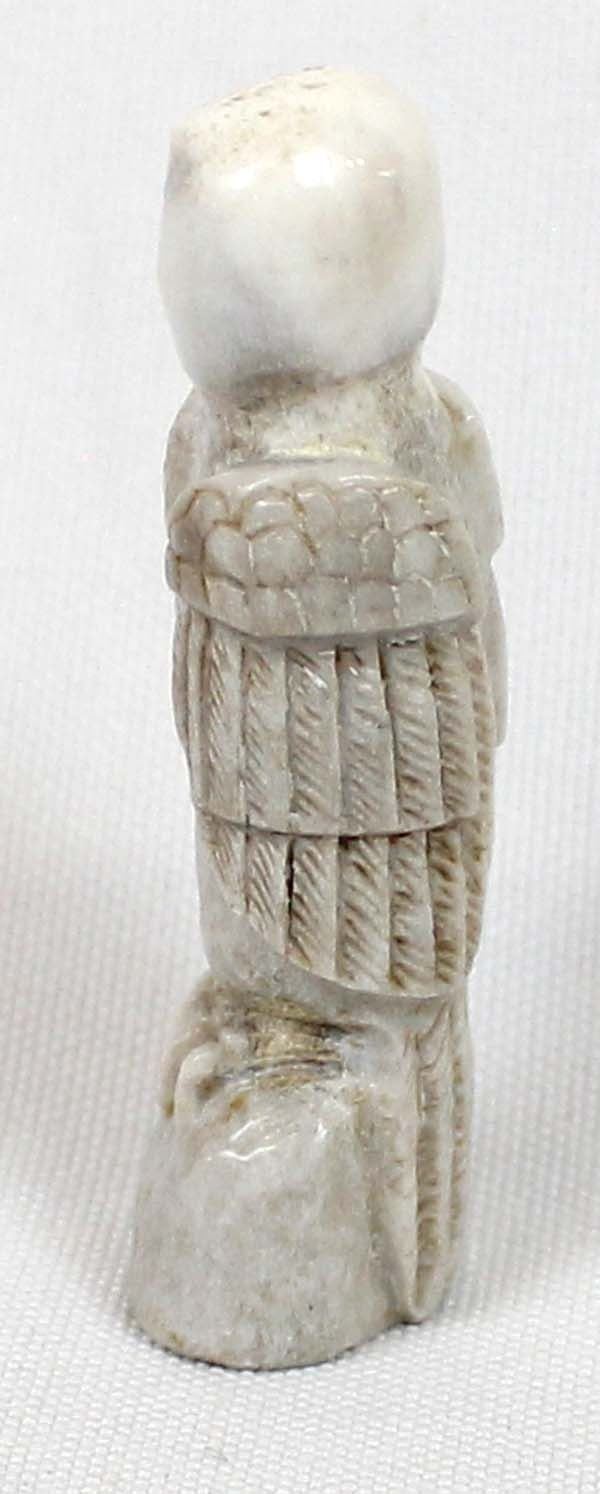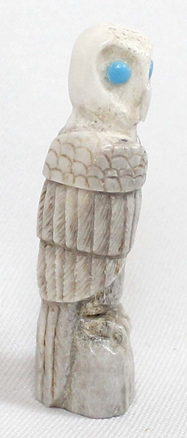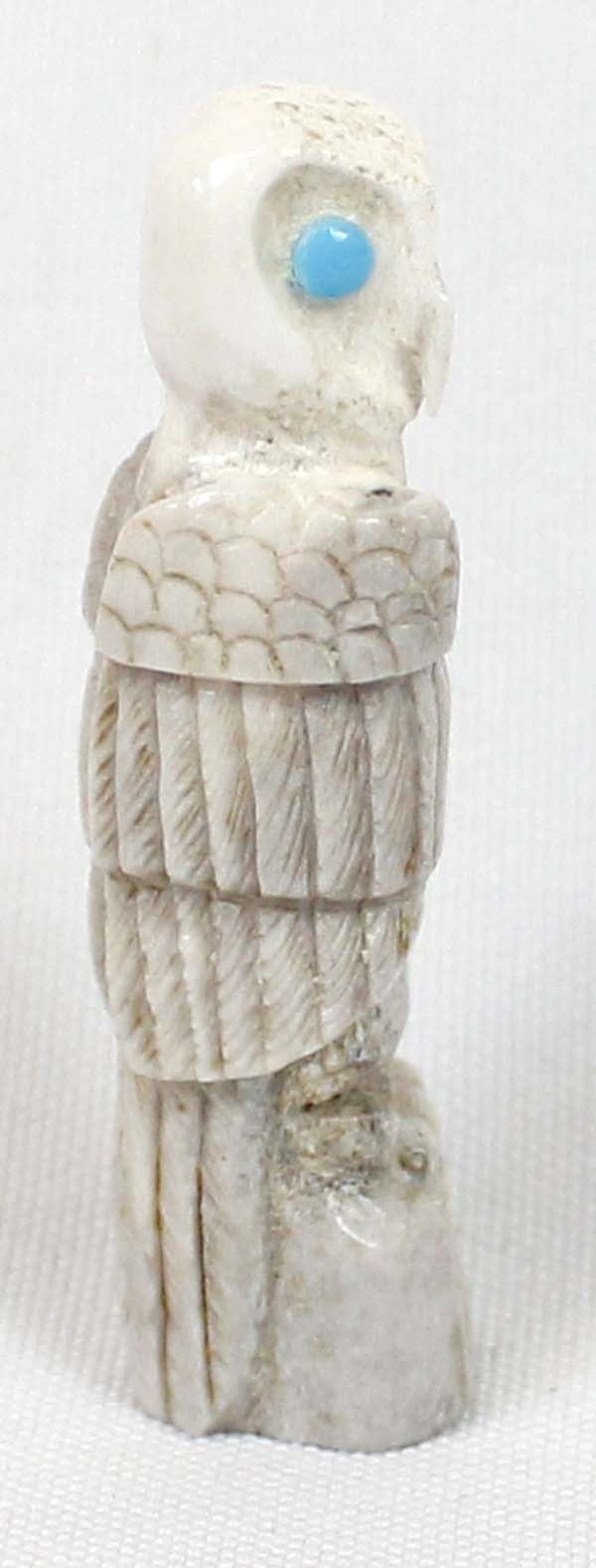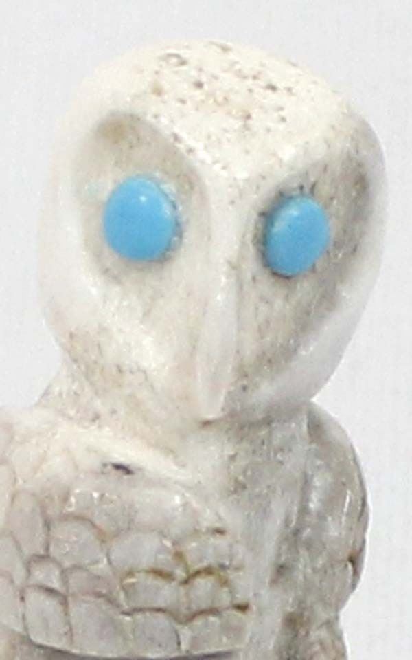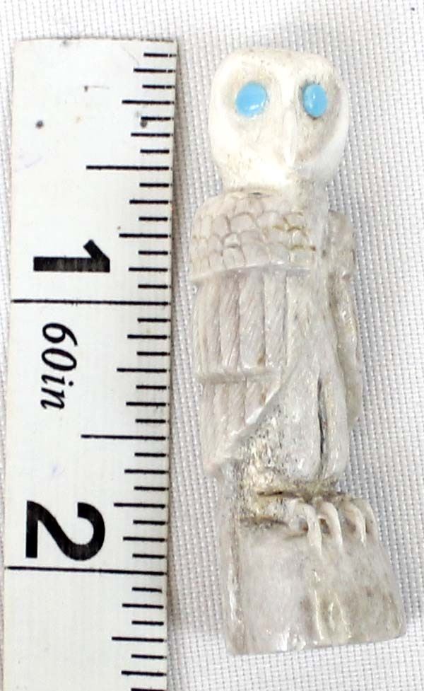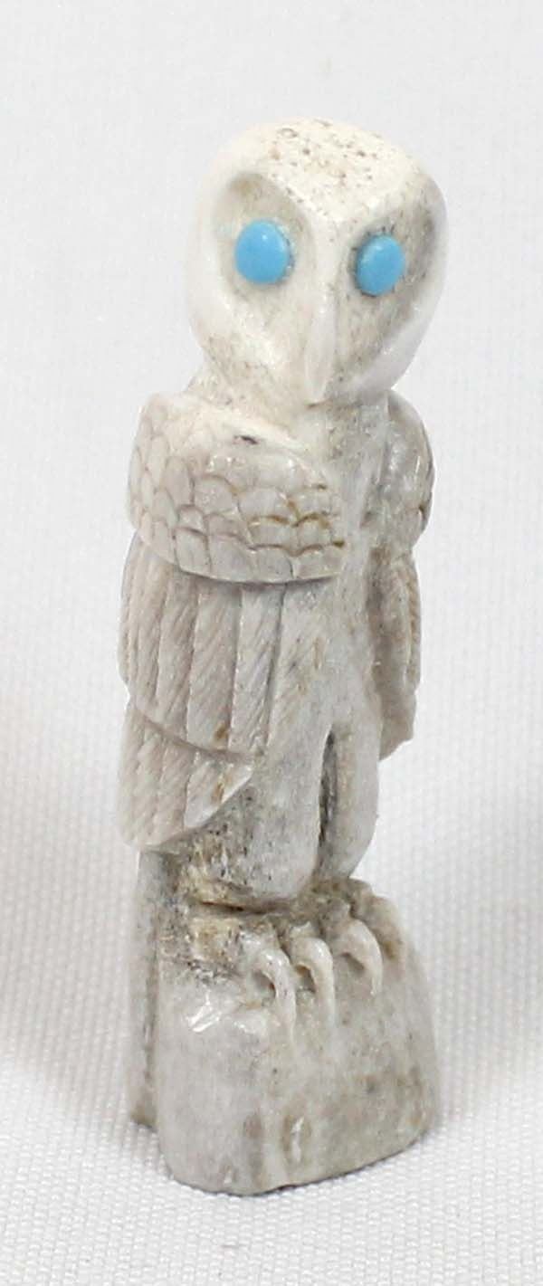 Native American Zuni Antler Barn Owl Fetish by Camilio Martinez, measures 2 1/8'' x .75'' x 5/8'' and is signed on the bottom, turquoise eyes