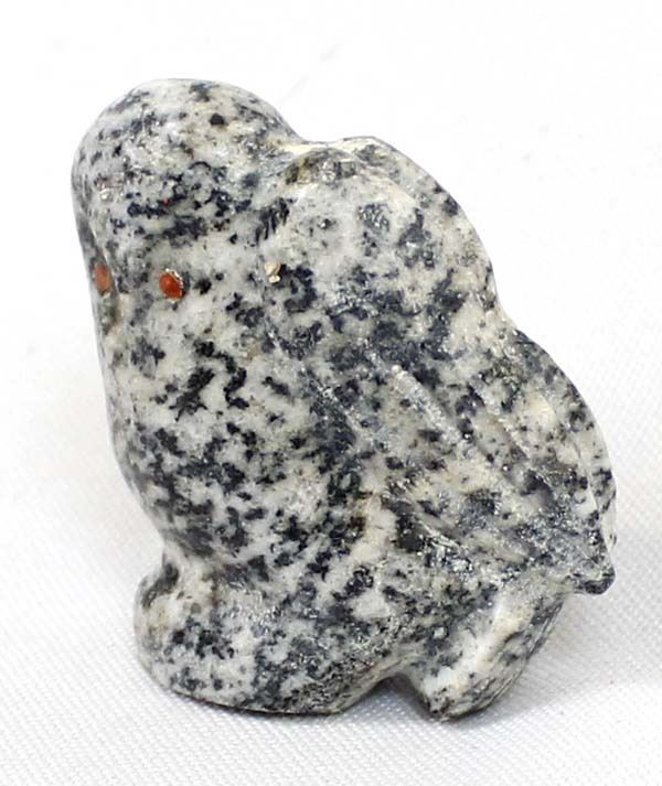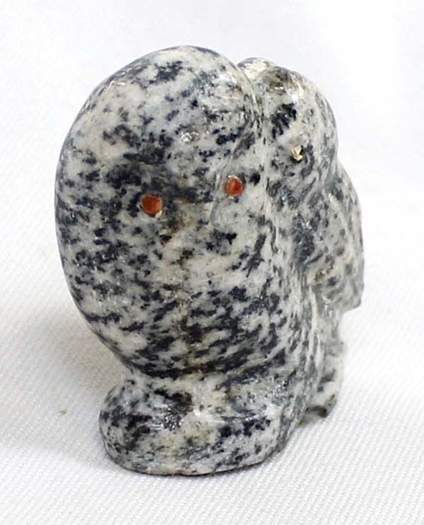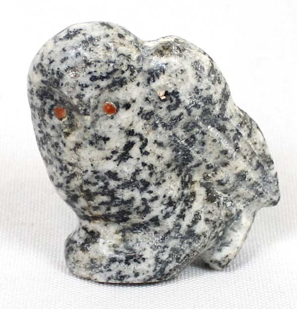 Native American Zuni Argite Owl Fetish, possible artist Gibbs Othole, measures 1.75'' x .75'' x 1 5/8''H, orange shell eyes