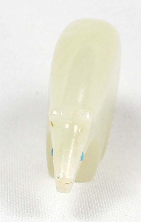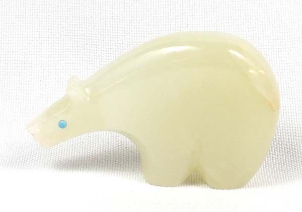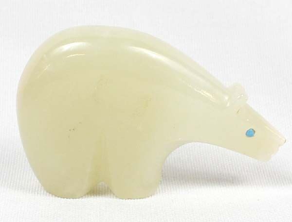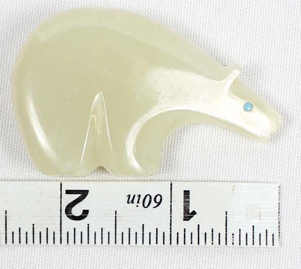 Native American Zuni Bear Fetish by Ronnie Lunasee, turquoise eyes, measures 1.5'' x 1.5'' x .5''
