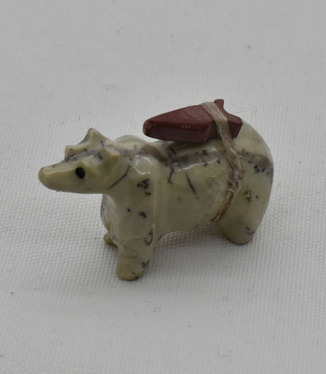 Native American Zuni Bear Fetish with Spirit Pack. This item measures 1.25'' long.
