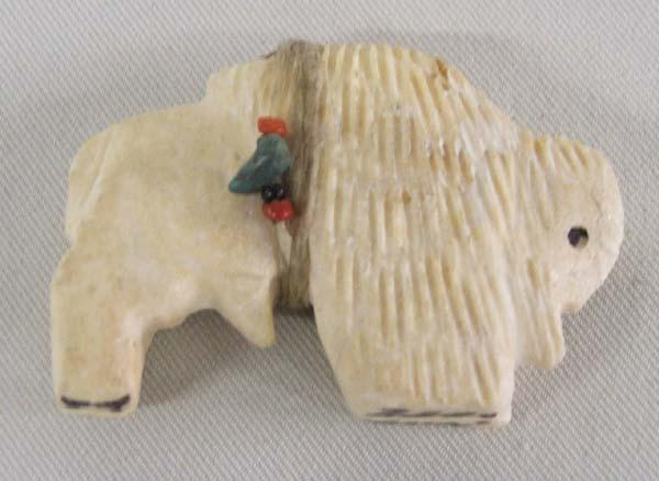 Native American Zuni Buffalo Fetish, measures approx. 1 1/3'' x 1 3/4''. Hallmark on bottom. Buyers Pay Actual Shipping and Handling Charges(see terms and conditions for more information).