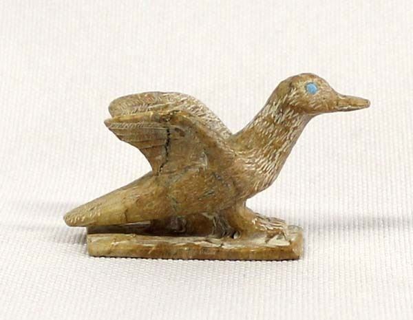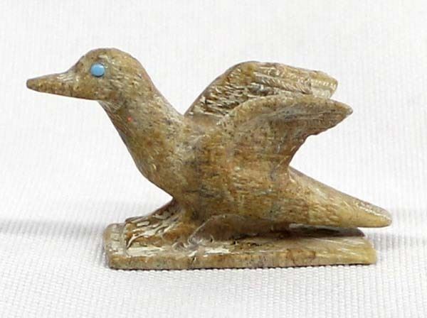 Native American Zuni Carved Alabaster Duck Fetish, turquoise eyes, measures 1'' x 1.5'', appears to be a W hallmark on the bottom