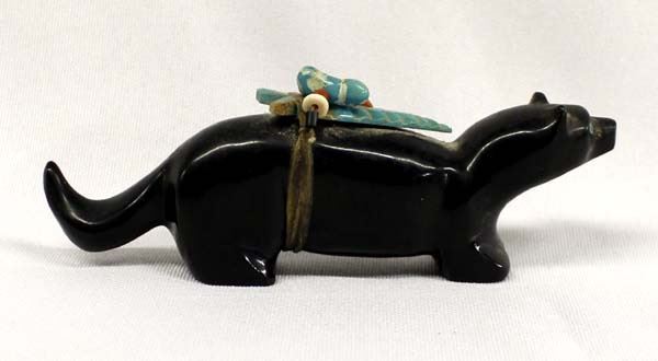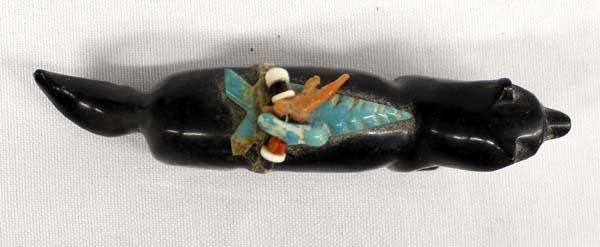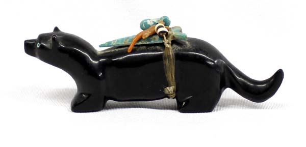 Native American Zuni Carved Jet Weasel Fetish, unsigned and measures 4.25"L x 1"W x 1.25"H