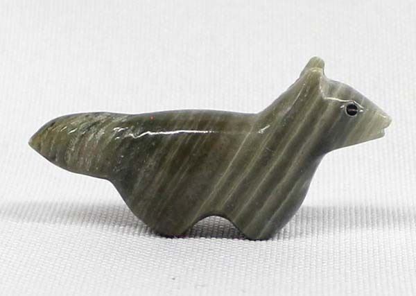 Native American Zuni Carved Serpentine Bushy Tail Fetish, measures 1'' x 1.5'', jet eyes