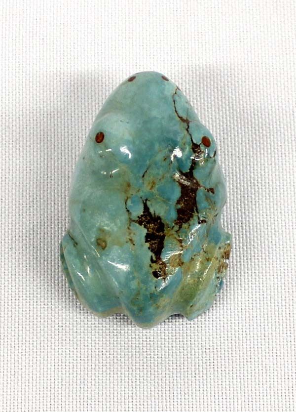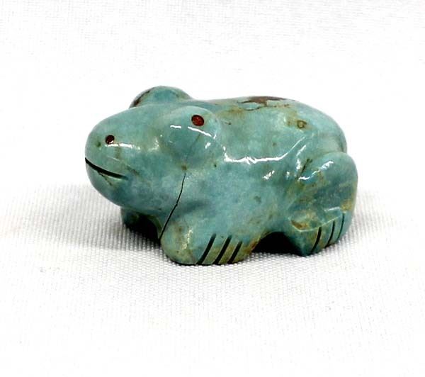 Native American Zuni Carved Turquoise Frog Fetish, coral eyes and nostrils, measures 1.75'' x 1'' x 1'', Sweet!